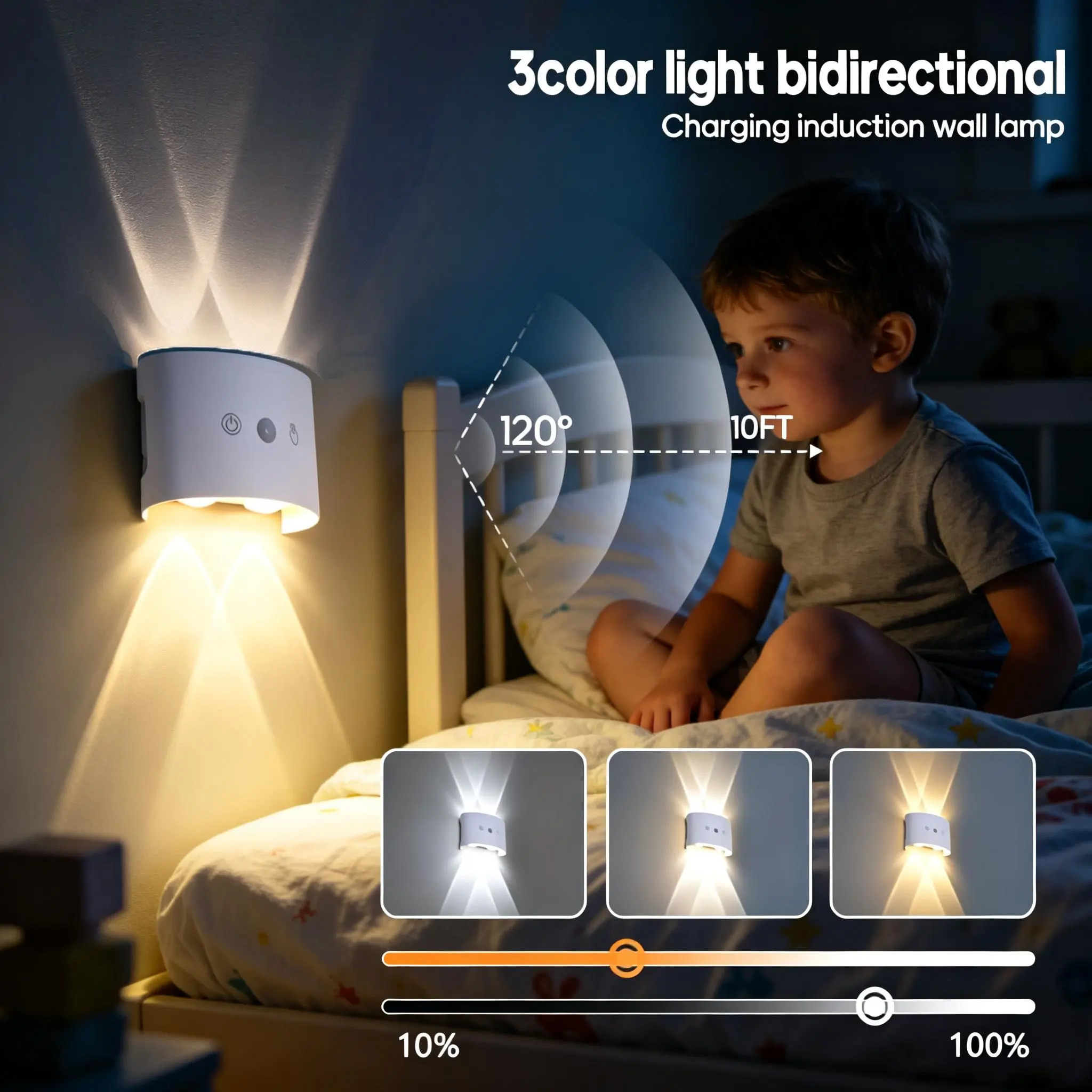 LED Light Smart Motion Sensor Wall Lamp with TouchSwitch Rechargeable Battery Powered Magnetic Installation for Indoor Decorative Ambiance Lighting