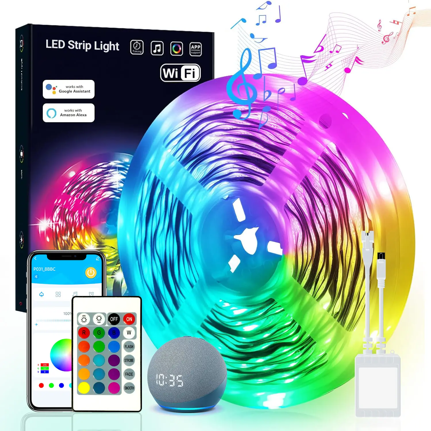 ·Led lights sync to music : Our wifi led strip lights can change color and sync with music ; It have multi-music mode, which will change to follow the rhythm or the melody; This music light strip can even respond to your voice which make the light “dance” to the beat