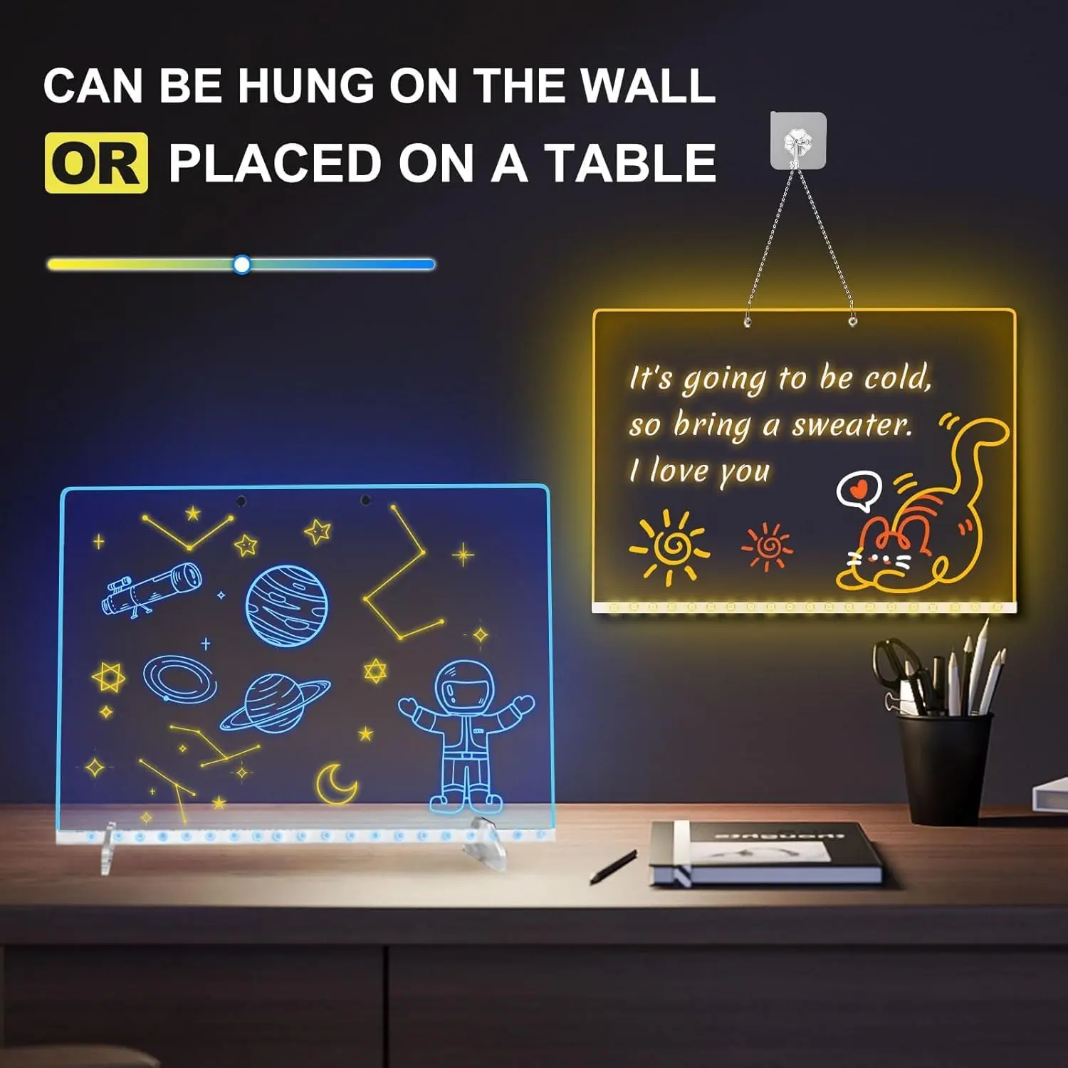 ·Multi-Scene Versatility & Perfect Gift for All Occasions: This light up drawing board is suitable for the entire family with practical functions across various scenarios – use it as an LED notepad in the office to jot down work plans; place it indoors as both a message board and a night light for morning reminders, or to create a cozy pre-sleep atmosphere at bedtime; or keep it in the kitchen to note cleaning tasks or dinner menus. Beyond daily use, it sparks kids’ imagination and artistic talent, provides hours of screen-free entertainment, and serves as a unique and delightful surprise gift for birthdays, Halloween, Christmas, New Year, and other festivals.
