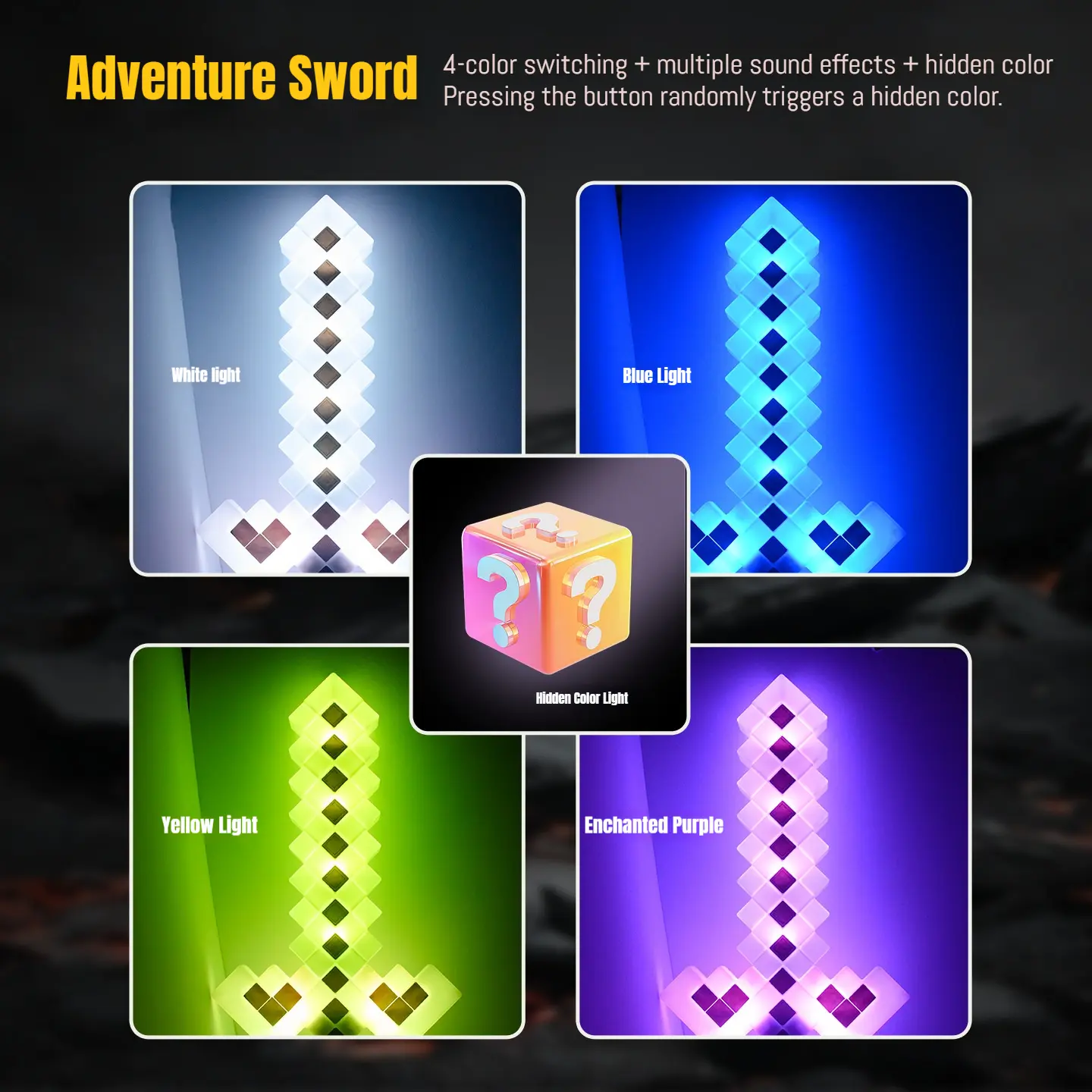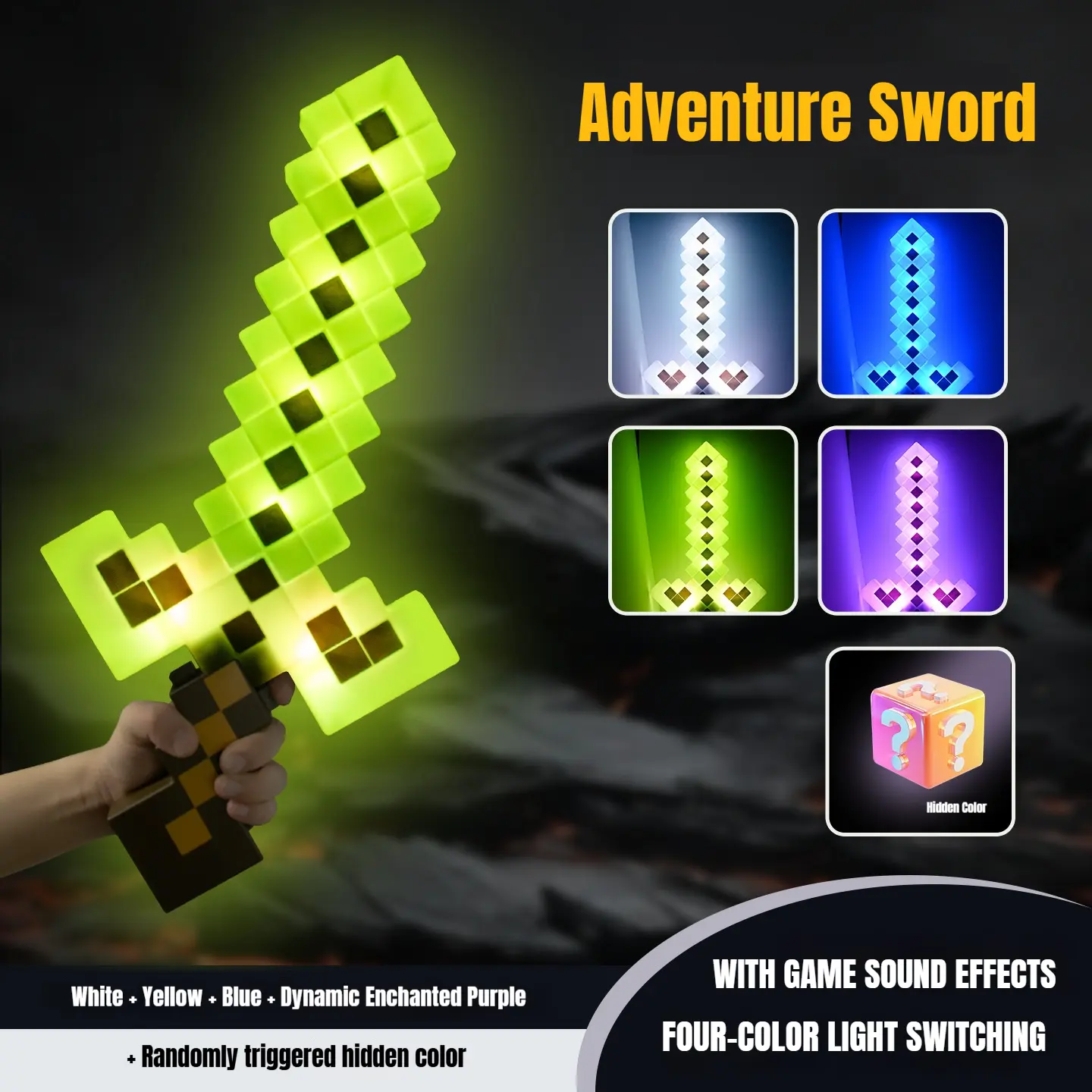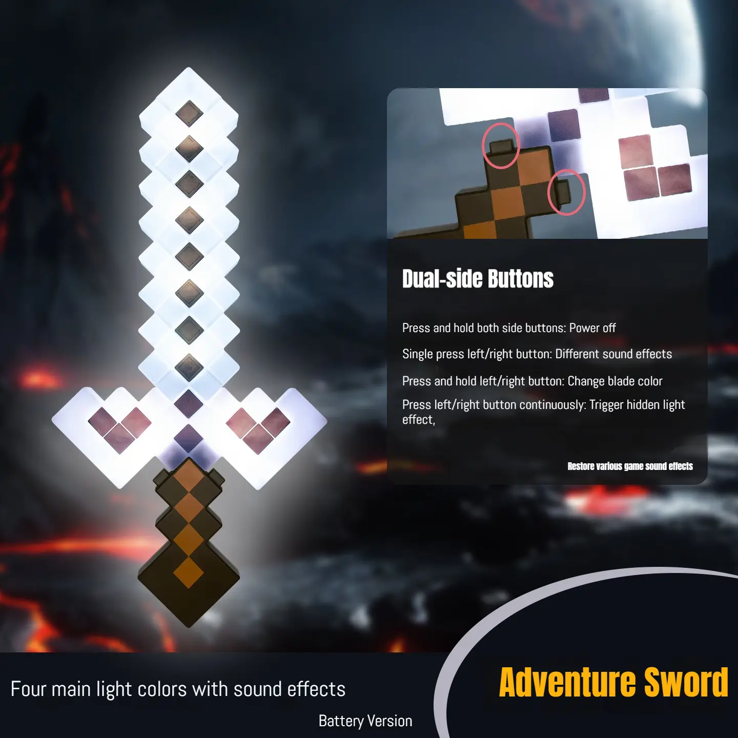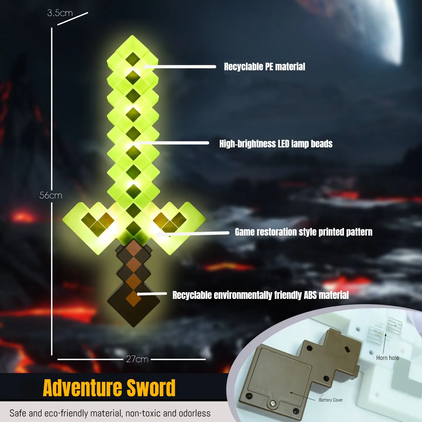 LED Light-Up Enchanted Sword Pixel Life-Size Role-Play Toy Costume Accessory Inspired by Video Game
