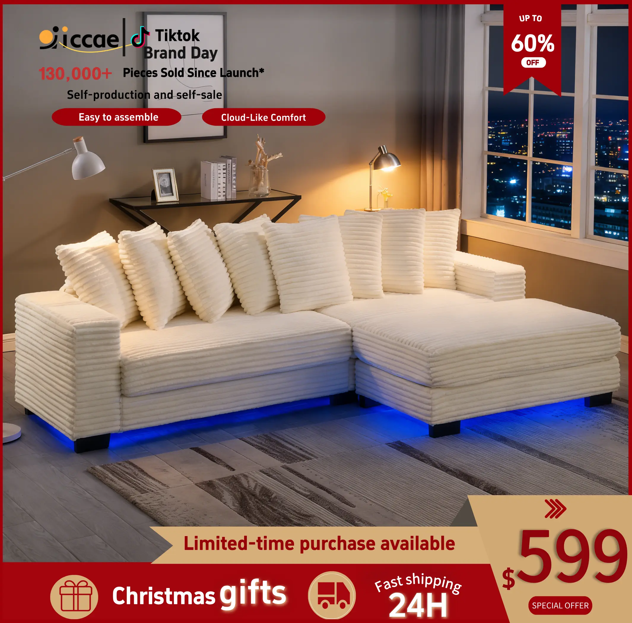 Upholstered in soft corduroy fabric with tufted detailing, this sofa exudes sophistication and complements a variety of interior styles, adding warmth and charm to any living space.