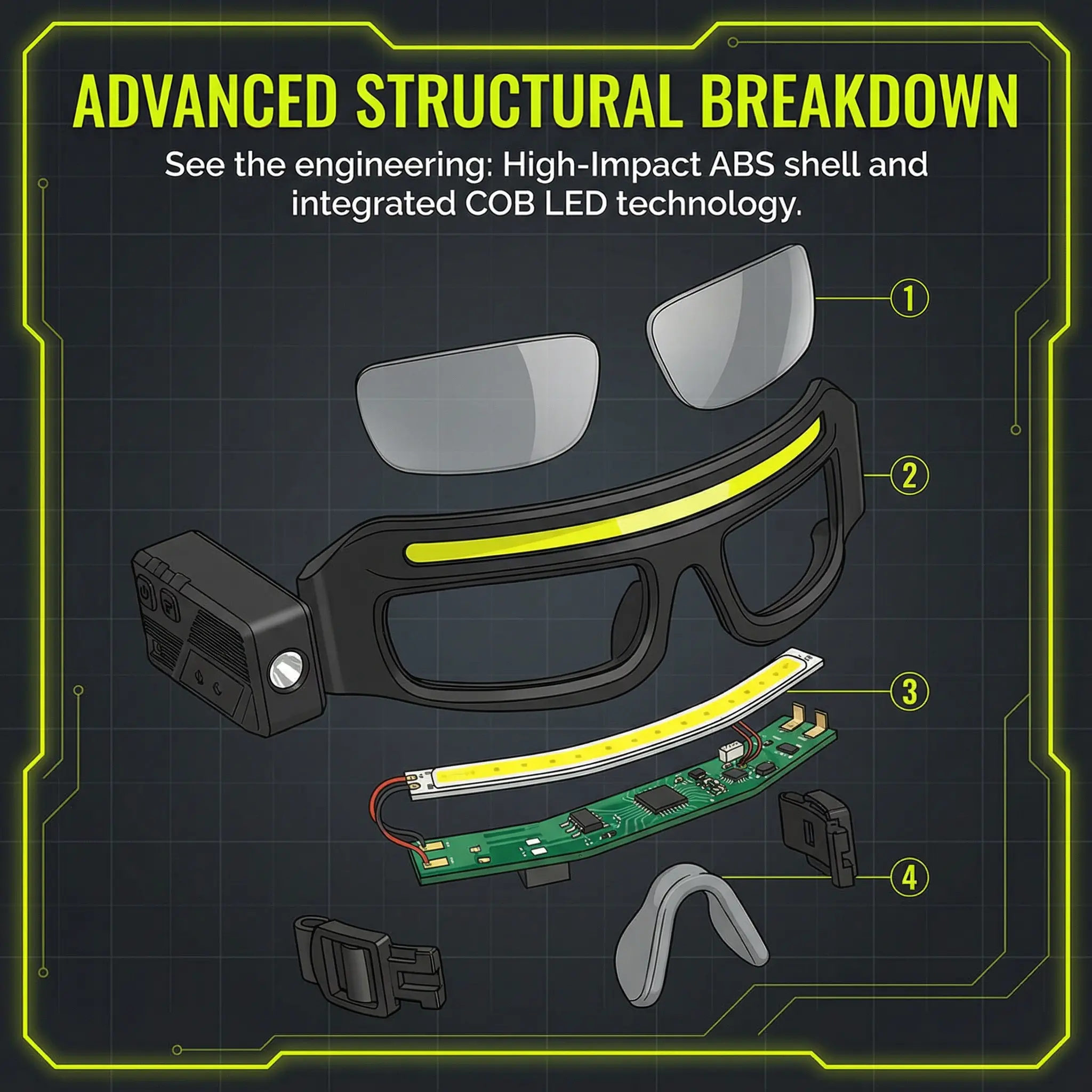 Designed as protective safety glasses, they help shield your eyes while providing illumination—perfect for work sites, garages, workshops, and outdoor tasks.
