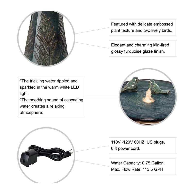 ·Includes fountain, 6'L cord, and 12V pump