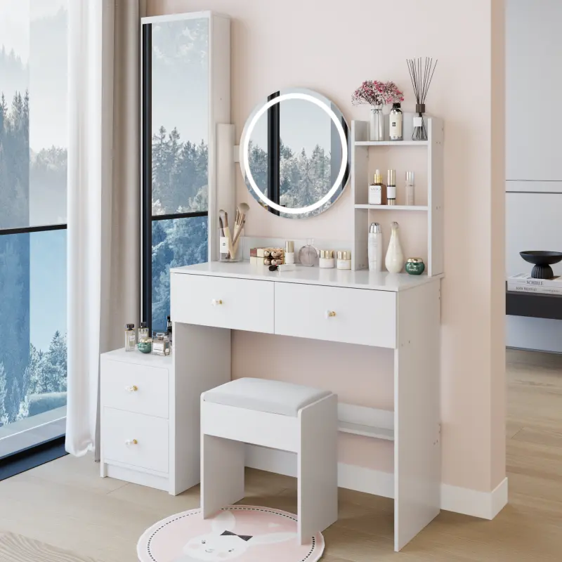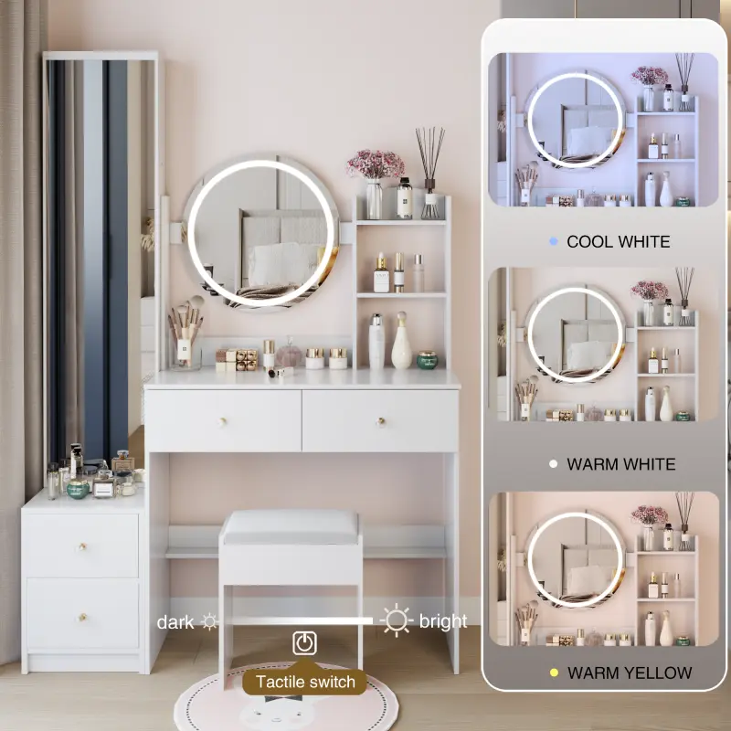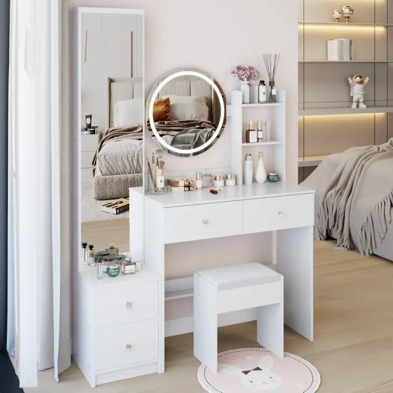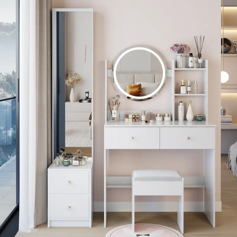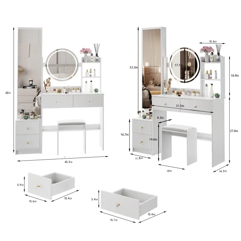 ·[Full body mirror cabinet+vanity table+cushioned stool set]:Our set includes a full body mirror cabinet, a vanity table and a cushioned dressing stool.With one purchase, you receive all three items, saving you time and shipping costs.