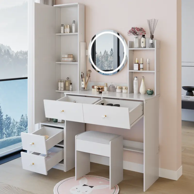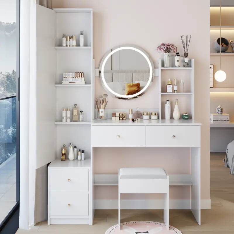 ·Configuration:This dressing table is a basic version, including a mirror light, not include built-in socket and hair dryer stand.Due to the same installation steps for the same product with basic and luxurious configurations, the installation manual is in a universal form.