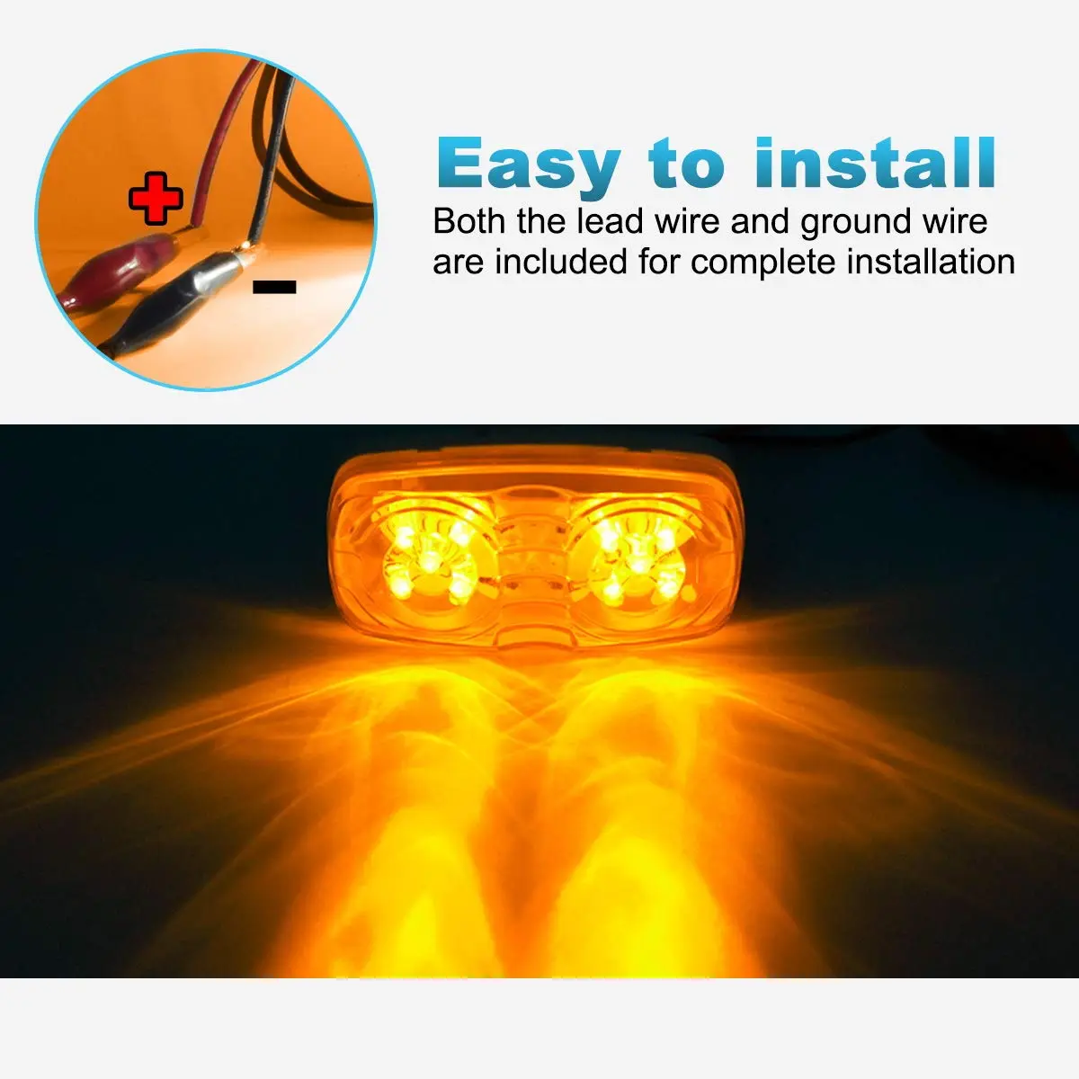 [Size] 100mm x 49mm x 26mm (4'' x 2'' x1''); Hole distance: 75mm (2.95''); The rectangular tiger eye led marker light features a replaceable snap-on lens; HARDWIRED with 2 wires: Black is the Negative and Red is the Positive