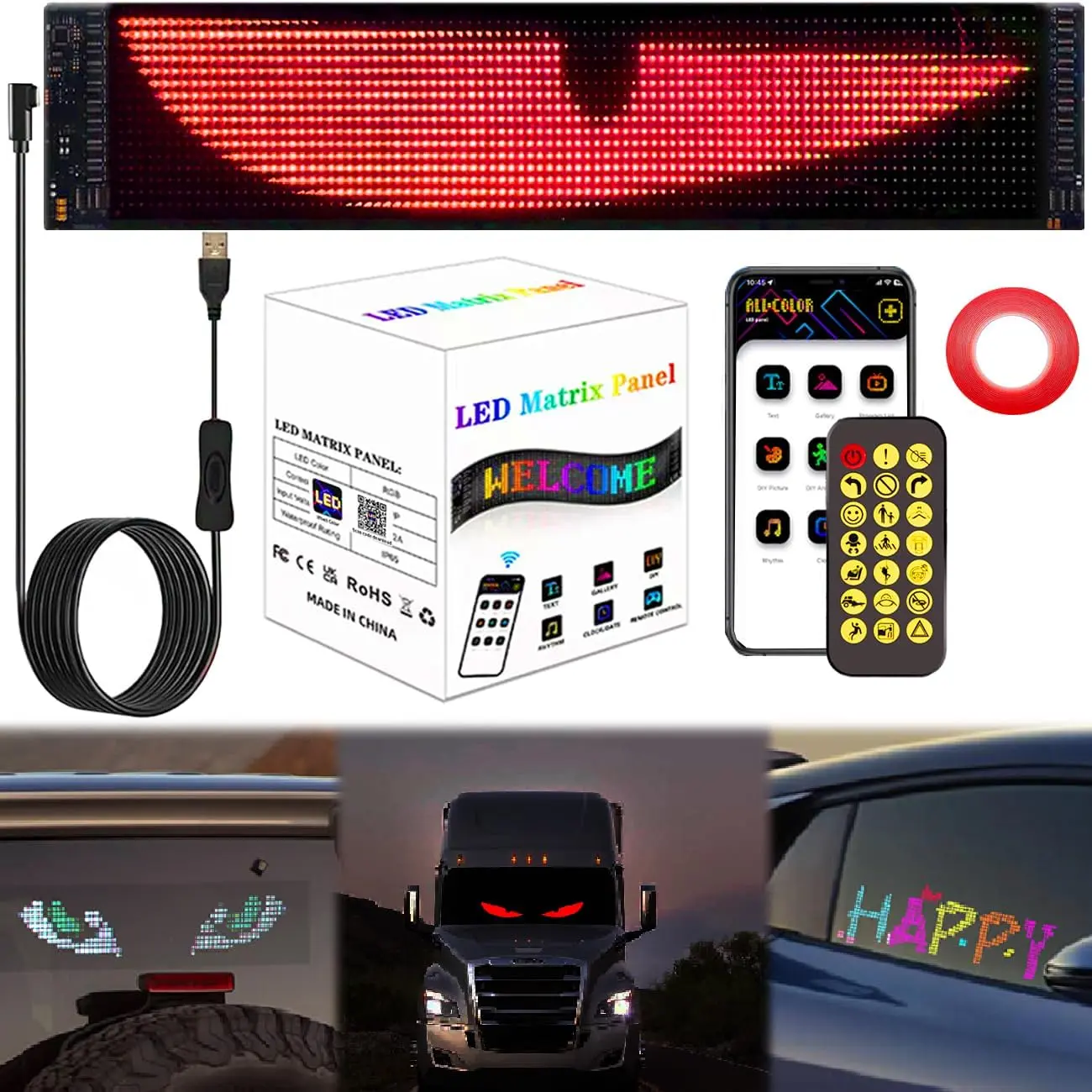 Enhance your vehicle with the Devil Eyes LED Matrix Panel. This versatile LED sign features pre-made animations and customizable text, perfect for various applications. đ