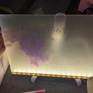 This light board is so freaking awesome. Several of my friends have light up boards like this, and mine is the best, hands down!! This one comes with like 7 colors of marker, and when you write on the board when it's lit, the marker glows so bright, and beautifully!! Works just like a dry erase.