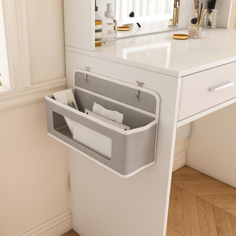 ·Embrace Organized Beauty:This vanity features a thoughtful storage system.Two spacious drawers safely store your precious cosmetics collection, six open shelves keep daily tools within easy reach, and the generous 27.56* 15.76-inch desktop provides ample space for products.The included non-woven storage bag offers versatile organization for brushes, jewelry or travel essentials, while the non-slip hair dryer holder ensures styling tools are always accessible.Every design element - from the s