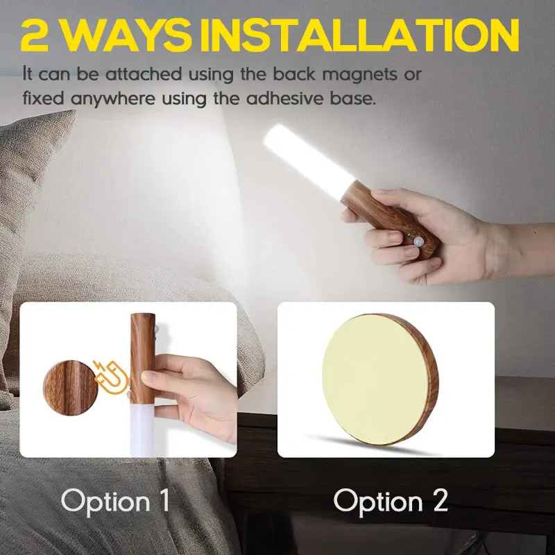 This rechargeable motion sensor closet light offers versatile usage with two available methods of installation. It can be conveniently attached using the back magnets or securely fixed in any location using the adhesive base.