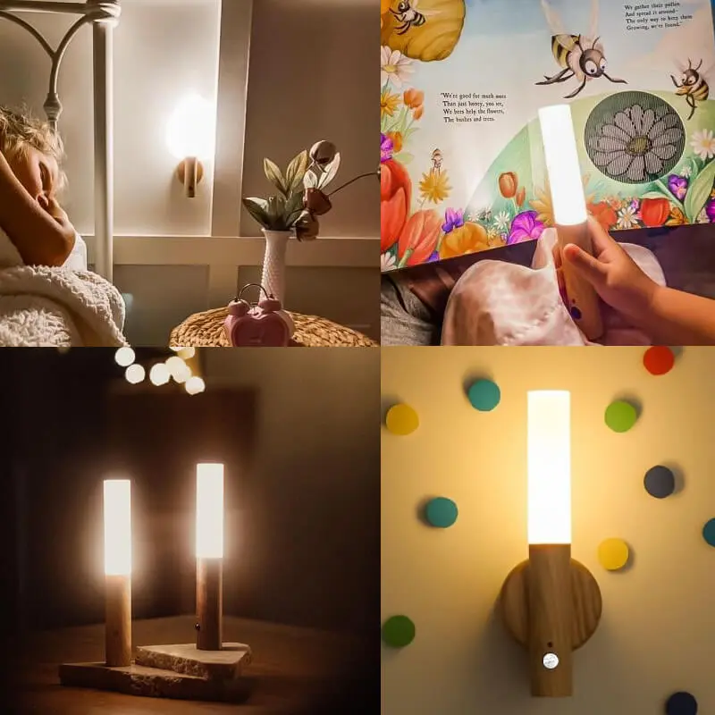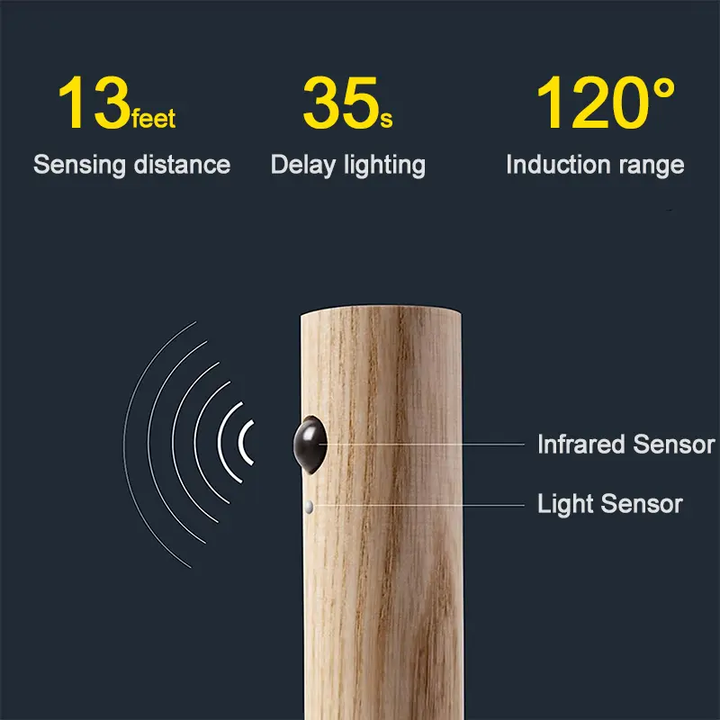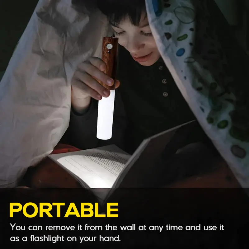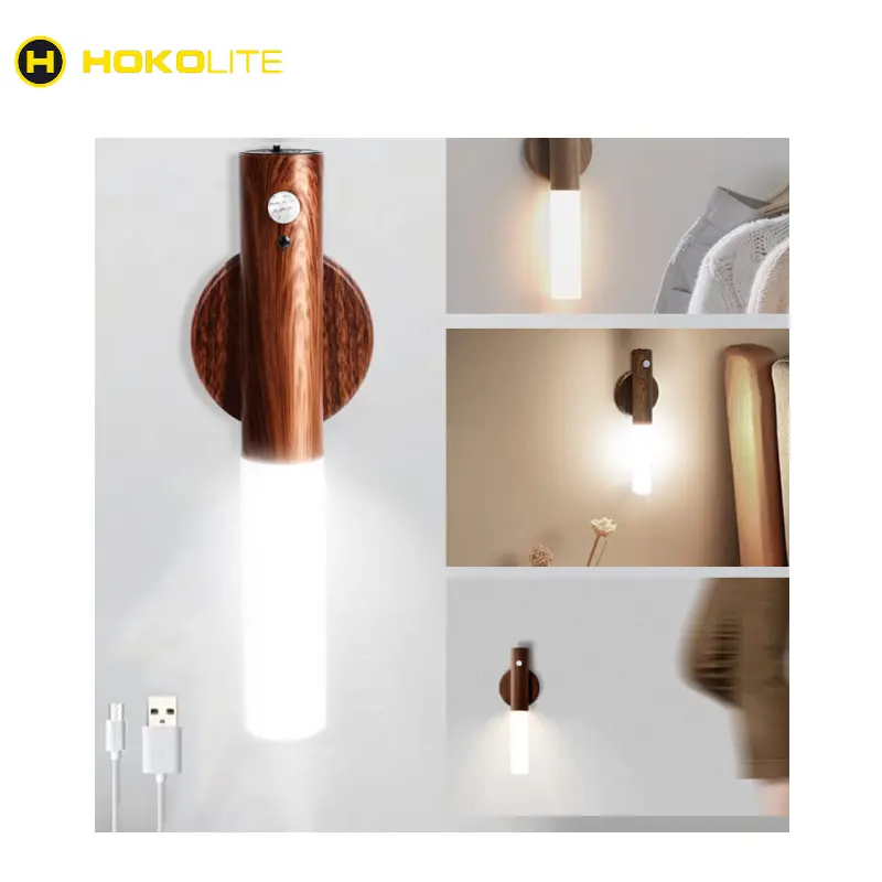 Hokolite Rechargeable LED Motion Sensor Closet Light in Wooden Texture with Magnetic Base for Easy Installation and Non-Glaring Design Modern Decor Smart Home