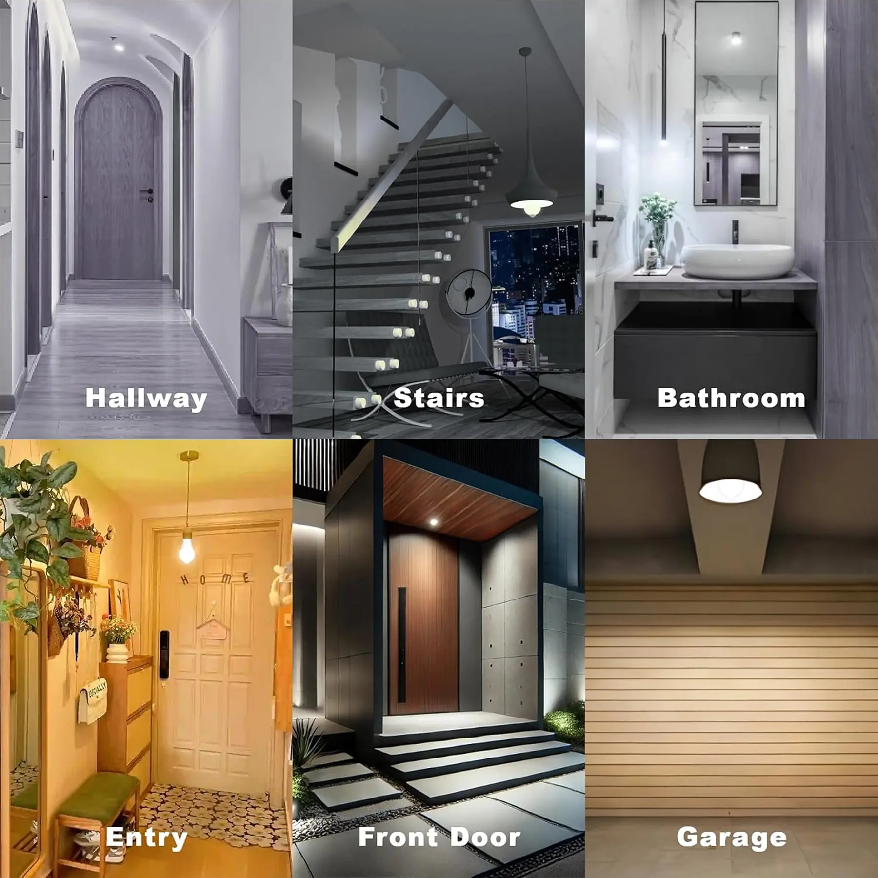 ·【Widely Applicable】 Widely used in stairways, hallways, front doors, storage rooms, garages, porches, closets, balconies, bathrooms, main entrances, and other places that require automatic lighting sensors. Additionally, it is also recommended for use as night lighting or as a security light.