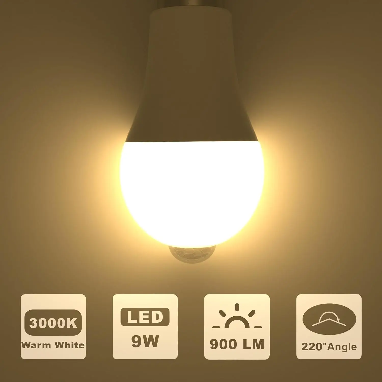 The 9W motion-activated LED bulb has a bright 900 lumens output, equivalent to a 60W traditional bulb, saving up to 85% of energy. It has a long lifespan of up to 25000 hours, reducing the frequency of bulb replacement and costs.
