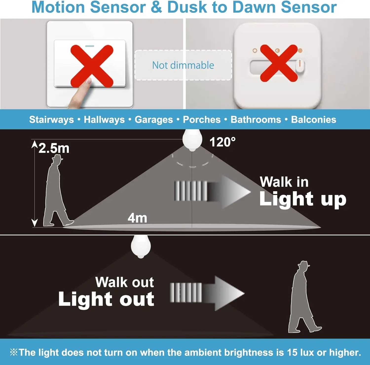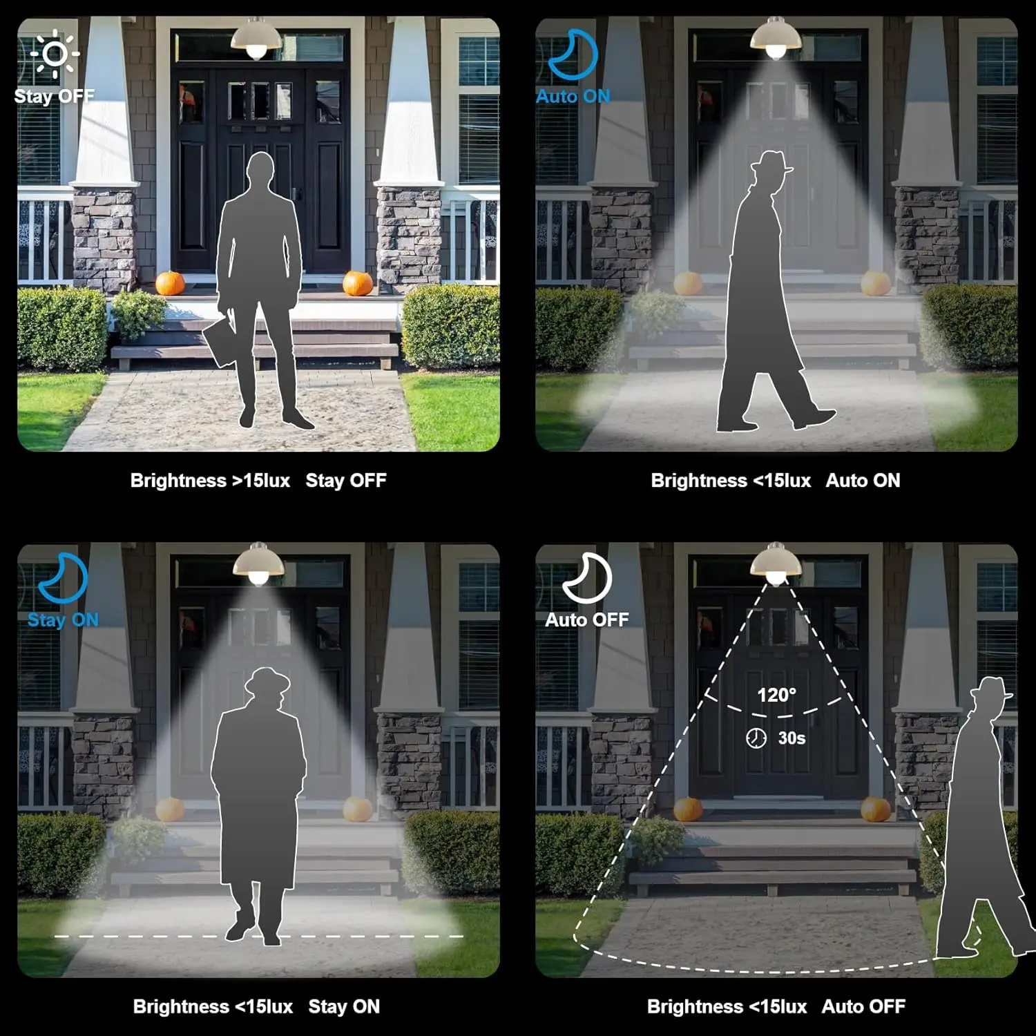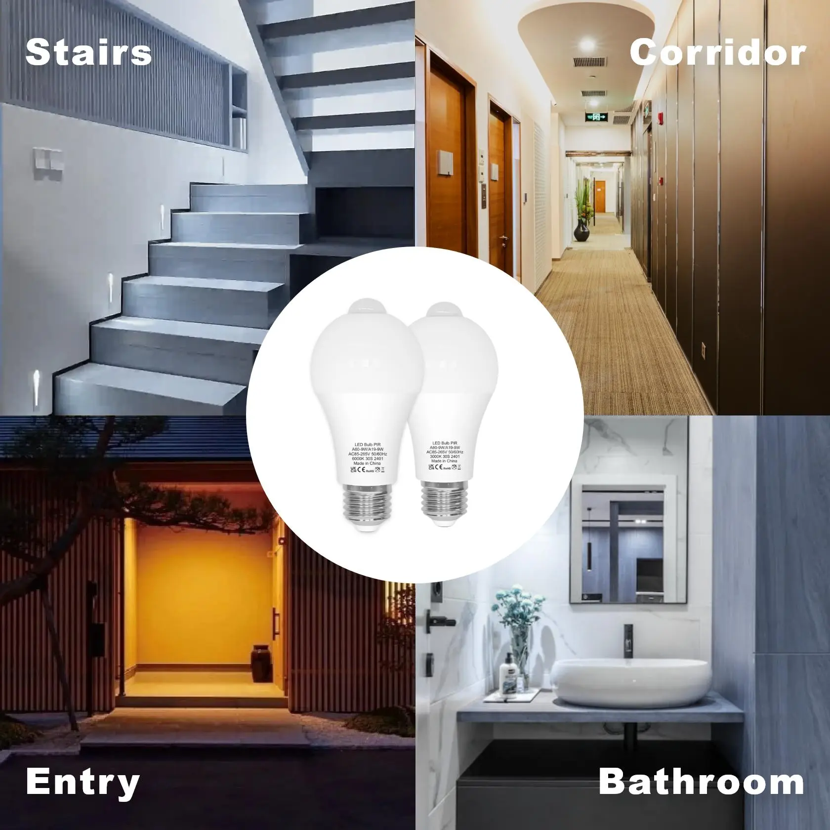 Widely used in stairways, hallways, front doors, storage rooms, garages, porches, closets, balconies, bathrooms, main entrances, and other places that require automatic lighting sensors. Additionally, it is also recommended for use as night lighting or as a security light.