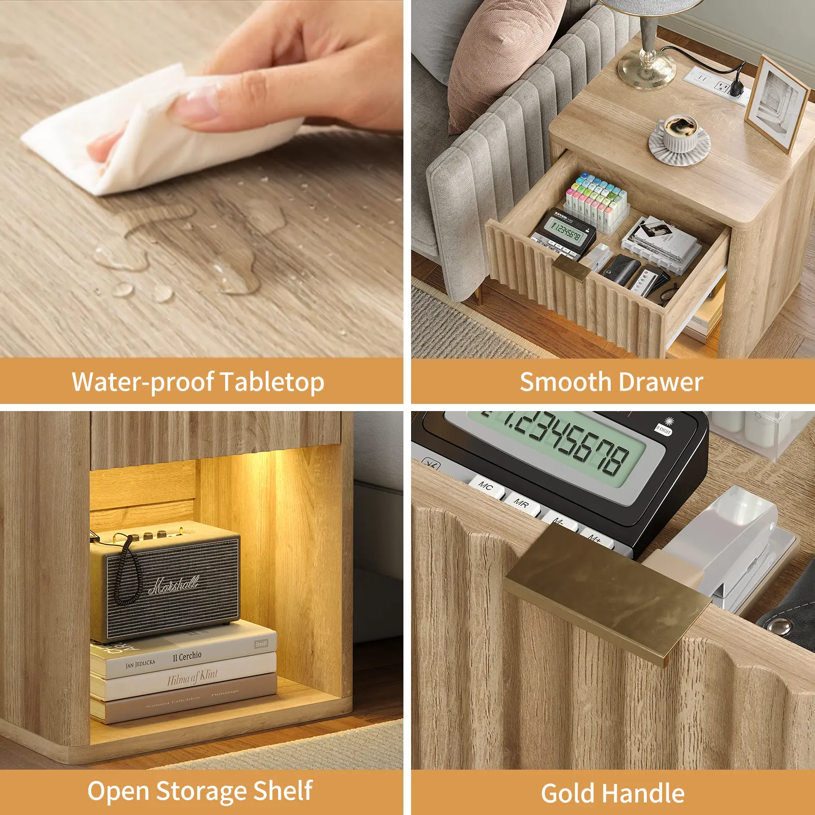 Solid Construction: The bedside table extracts medium density fiberboard as main raw material, the surface is waterproof, anti-scratch and dustproof, the rounded edges are designed with a sturdy structure to ensure that it can stand up to daily use while maintaining its elegance; You can be sure that this side table will be a reliable companion in your home for many years to come