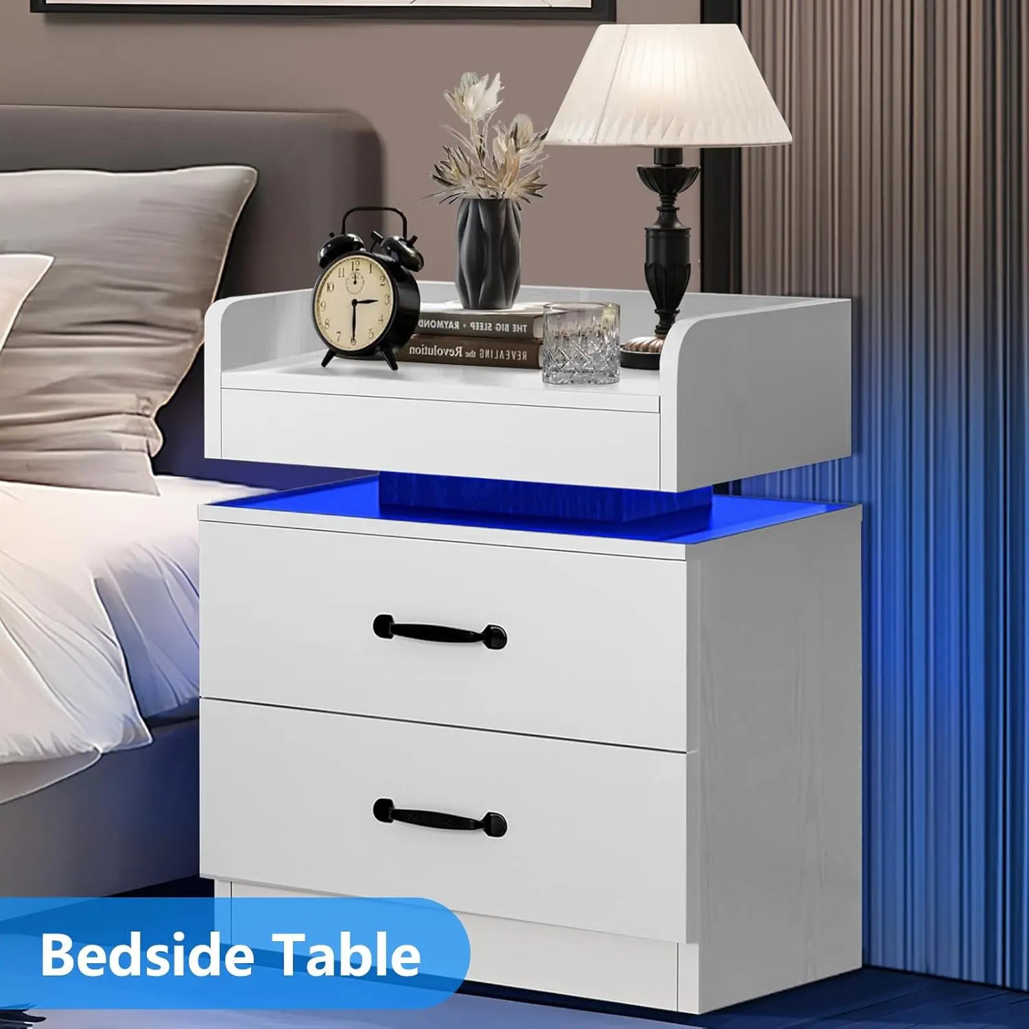 ·【Easy to Assemble & Customer Service】----- This led nightstand with charging station will come with a step-by-step installation manual and you can easily assemble this white nightstand individually. If you encounter any problems about led nightstand, please contact us. We will reply to you and help you solve the problem within 24 hours.