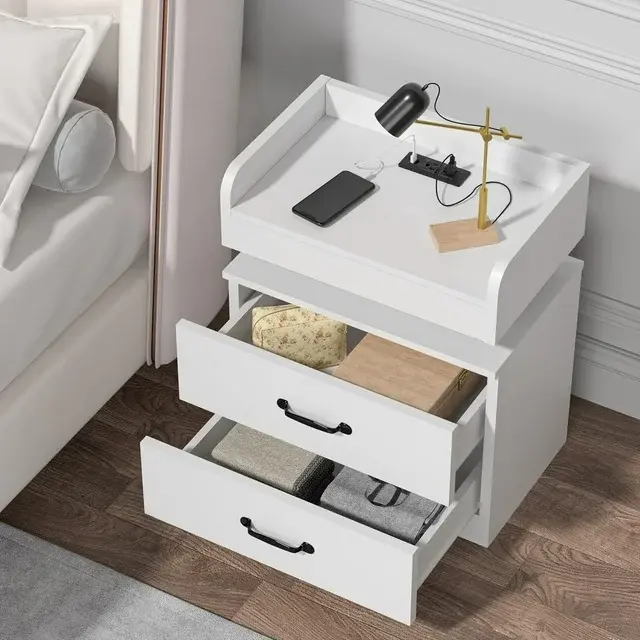 ·【23.6" Nightstand with Large Storage】----- With a height of 23.6 inches, this nightstand allows easy access to all tabletop items and has ample storage space for your bedside essentials. Two large drawers and the tabletop offer spacious storage solutions.