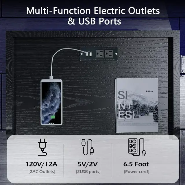 ·【Nightstand with Charging Station】----- The nightstand with 2 USB and 2 Plug Ports so it's easy to operate the device to charge or plug in a night light.You can charge your phone, tablet, smart watch without connecting any cables.