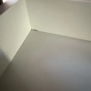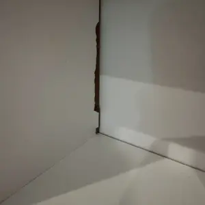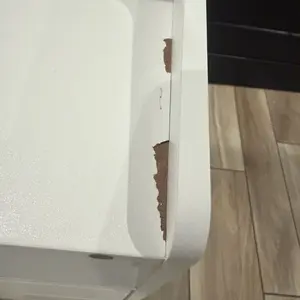 Very cute and small, perfect for a small room. Donât get me wrong I really like it but it had its downside. One it came chipped, we also had to cut a piece ourselves because it wasnât leveled right, also it has a gap.