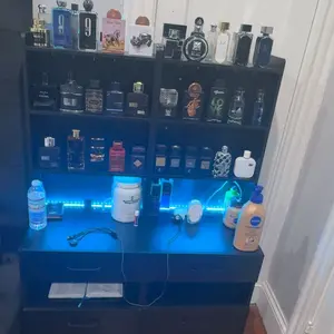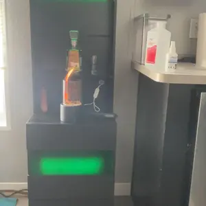 Everything I imagined it to be and more. Made fro. Durable wood and metal. Assembly took sometime but once it came together every looked absolutely stunning. The Led lights give it a beautiful finishing touch. More than enough space to organize coffee, teas and wine supplies. Arrived super fast.