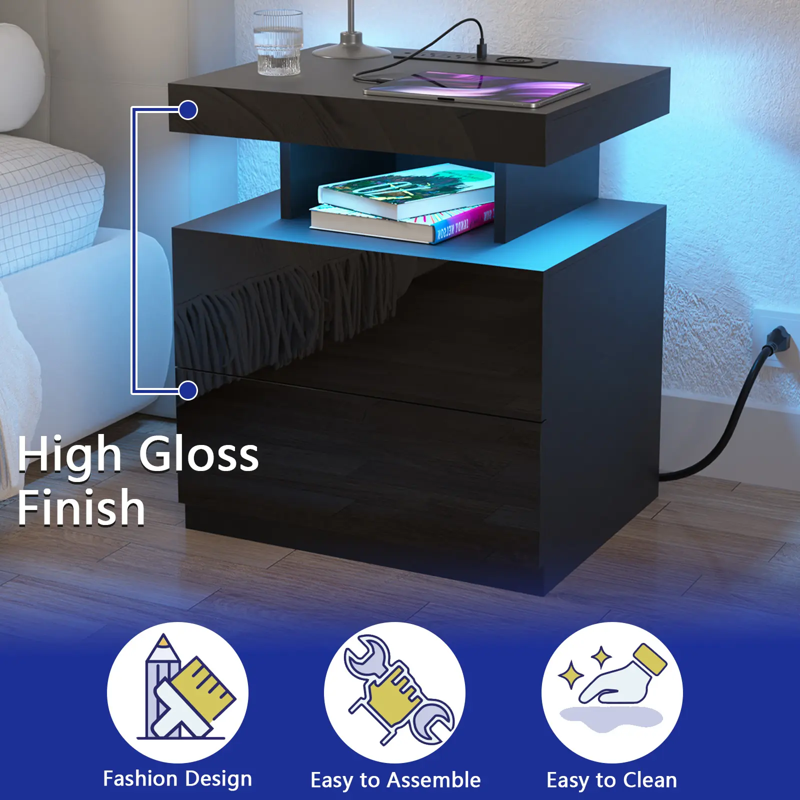 ·Sleek high-gloss front panel adds a premium look