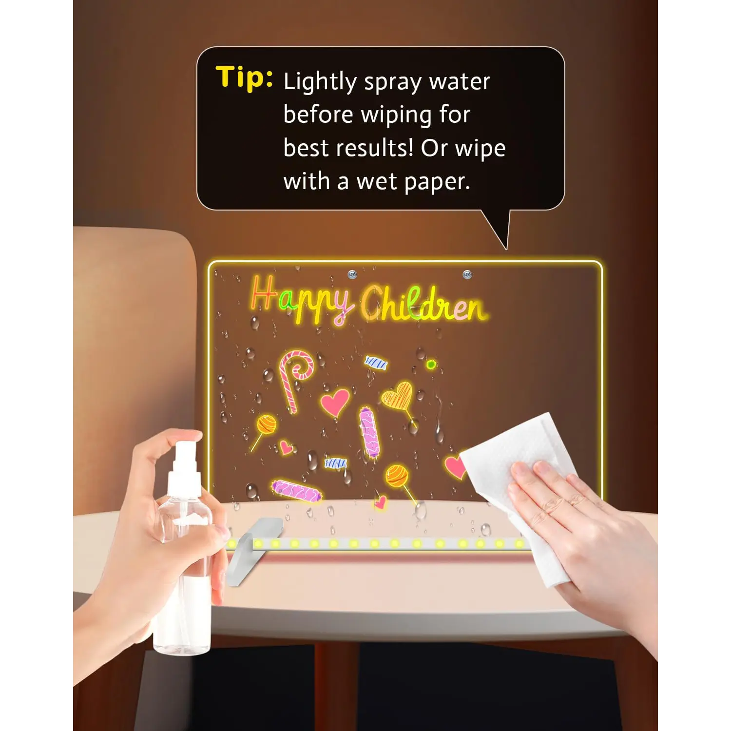 ConclusionThis LED Note Board with Seven Colors is a versatile and creative tool for kids aged 3-12. It features dynamic lighting, a premium water-soluble material, and complete accessories for seamless use. Perfect for office, home, and kitchen use, it encourages creativity and organization.