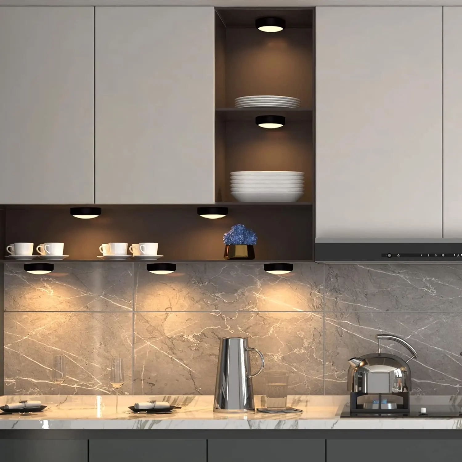 Perfect for under cabinets. Wish the remote used aaa batteries too but doesn’t matter much since you can press them to turn on and change from white to blue, red, or green