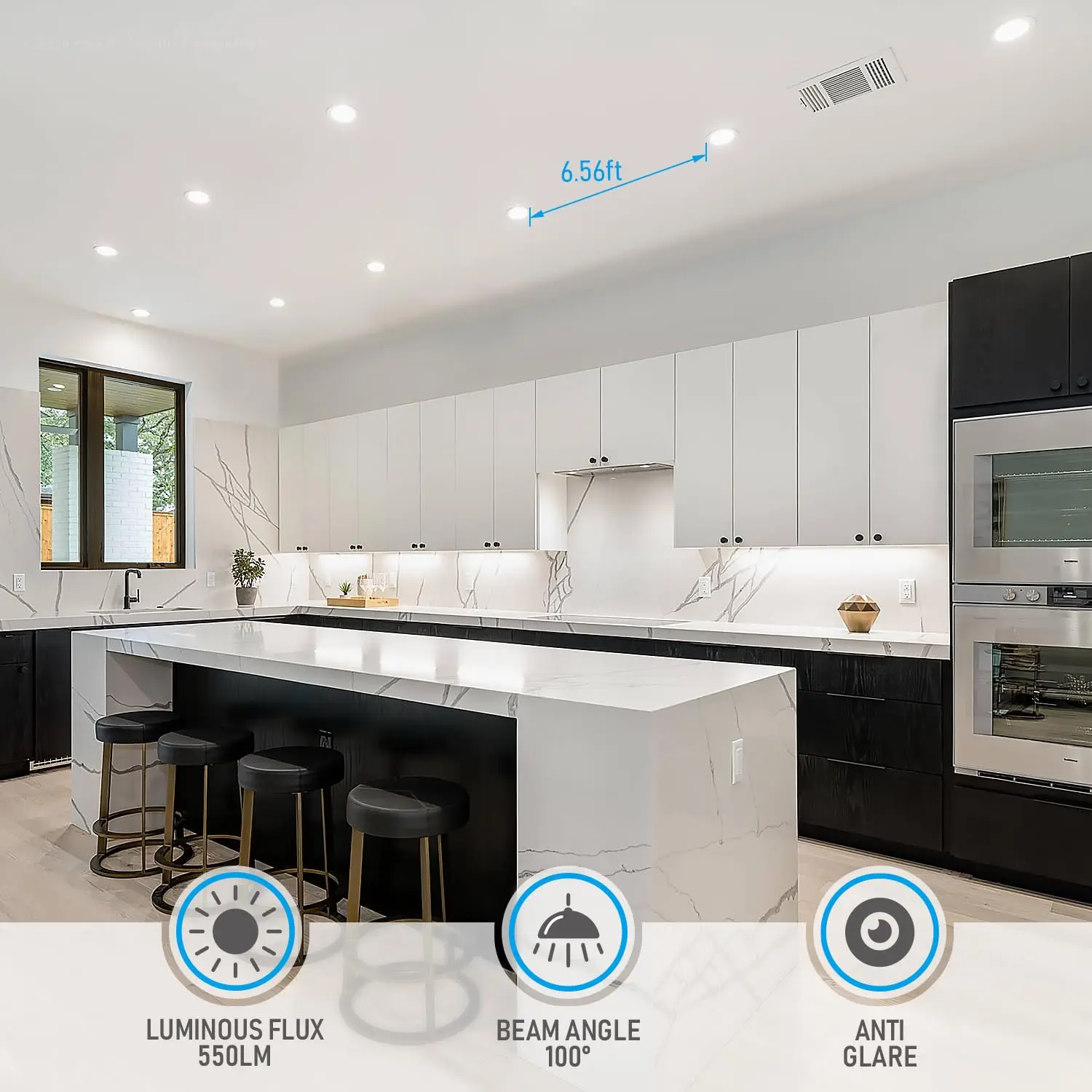5. Torchstar 4 Inch Dimmable Aluminum Anti-Glare Baffle LED Recessed Light (8 Pack) - 2700K/3000K/3500K/4000K/5000K Selectable