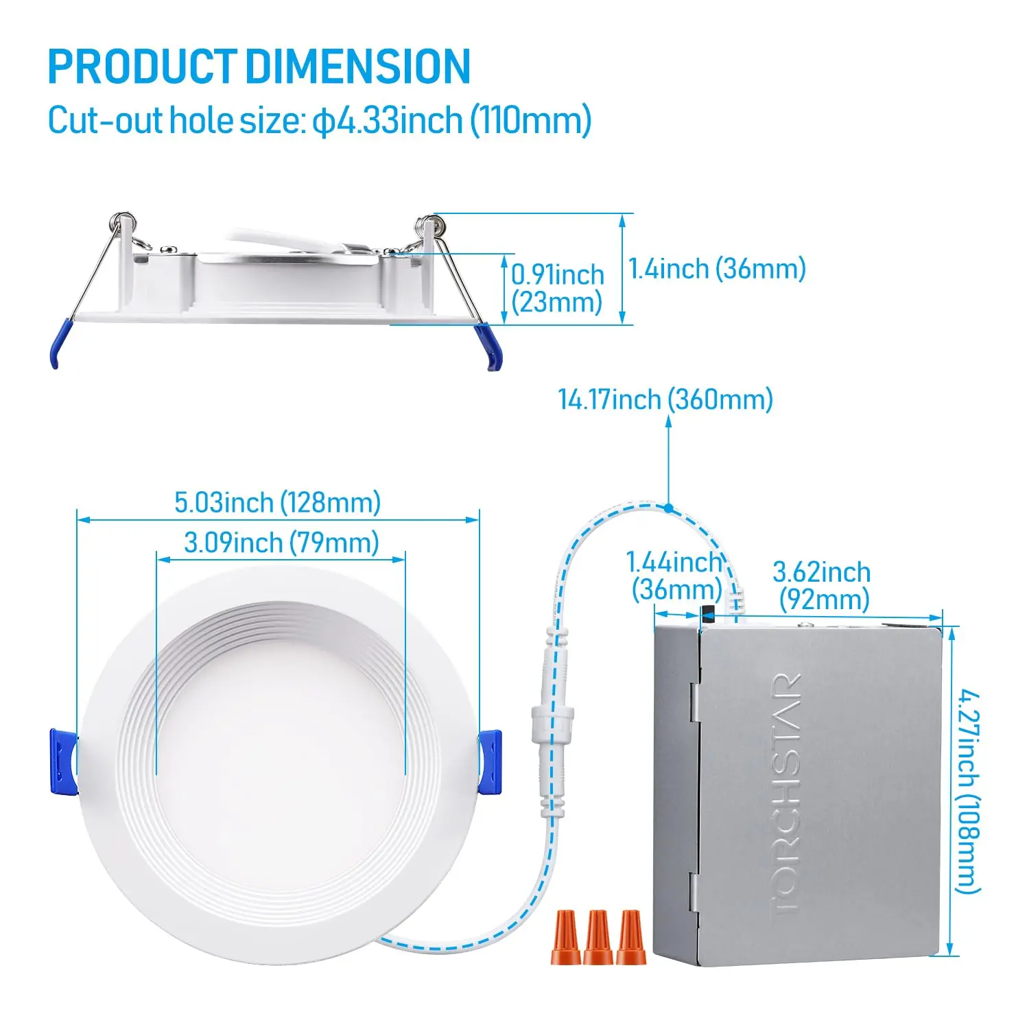 The TorchStar 4-inch LED downlight is a high-quality, super bright fixture with unique design features that promote energy efficiency, safety, and versatile lighting customization.