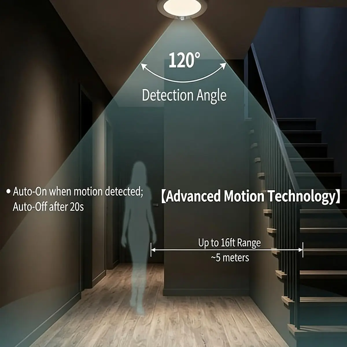 【Motion Sensor】: Automatically turns on/off when motion detected, providing convenience and energy efficiency.