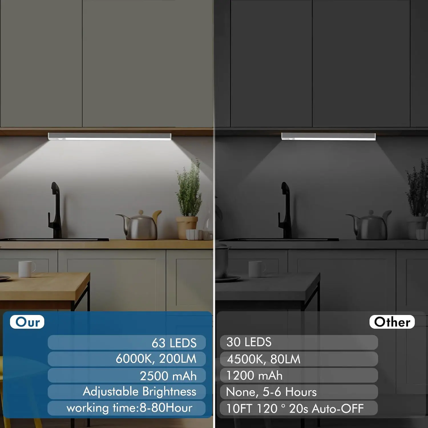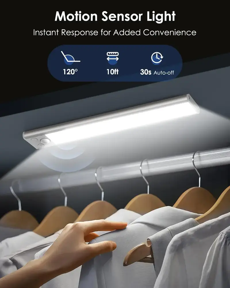 Hands-free operation makes life easier: Equipped with a built-in motion sensor, the light turns on automatically when you approach and dims gradually after you leave. No need to fumble with switches when cutting vegetables in the kitchen, looking for items in the bedroom, or taking clothes from the closet.