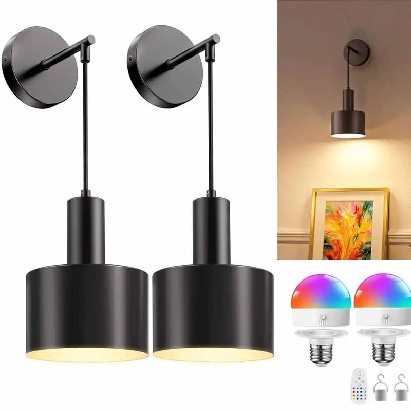 2 Piece LED Rechargeable Wall Light Set, Modern Iron Art Wall Lamp, RGB Remote Control Indoor Decor Lighting, Modern Mood Lighting