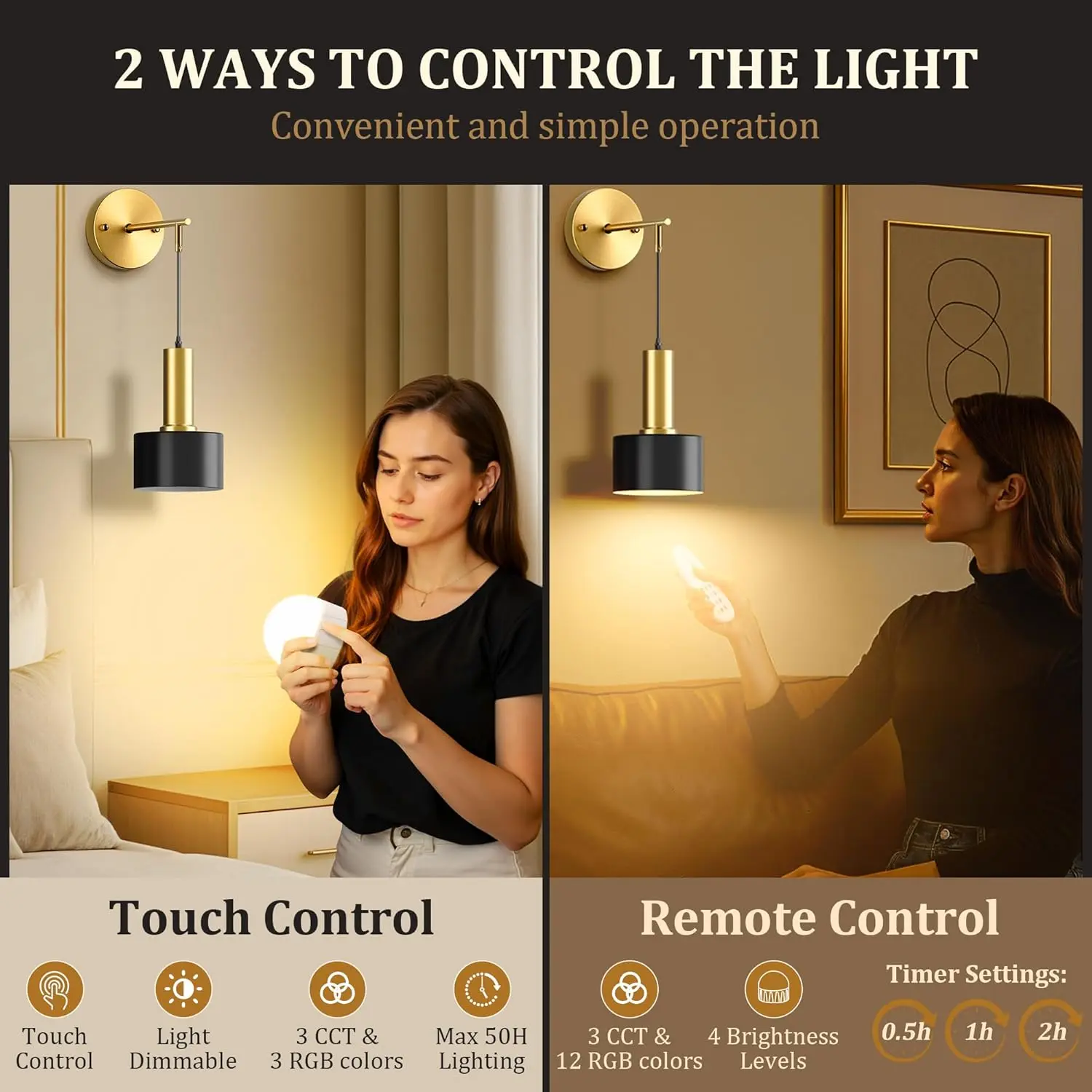 2PCS Rechargeable LED Wall Lights, Modern Touch Control Remote, Easy Installation for Bedroom Hallway Entryway Decor, Decorative Wall Light, Home Decor Light