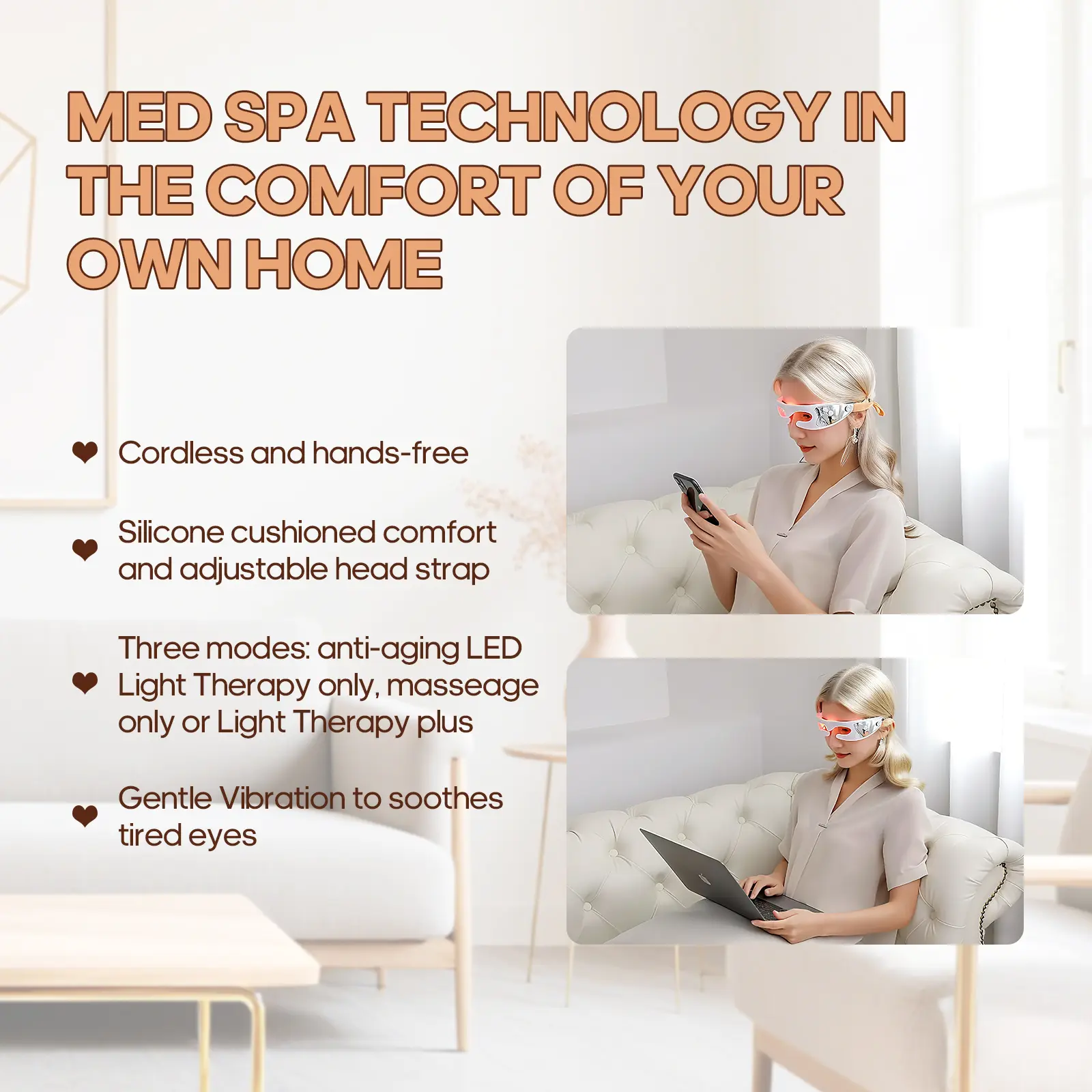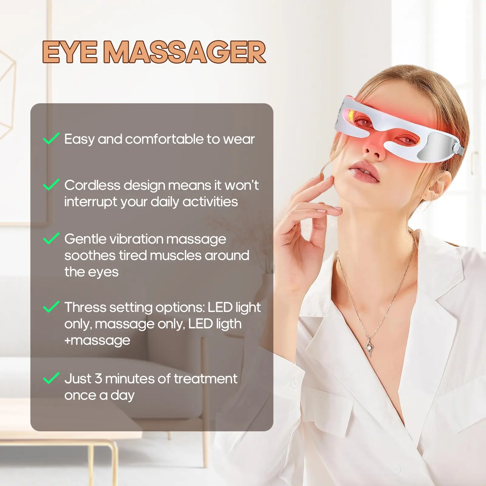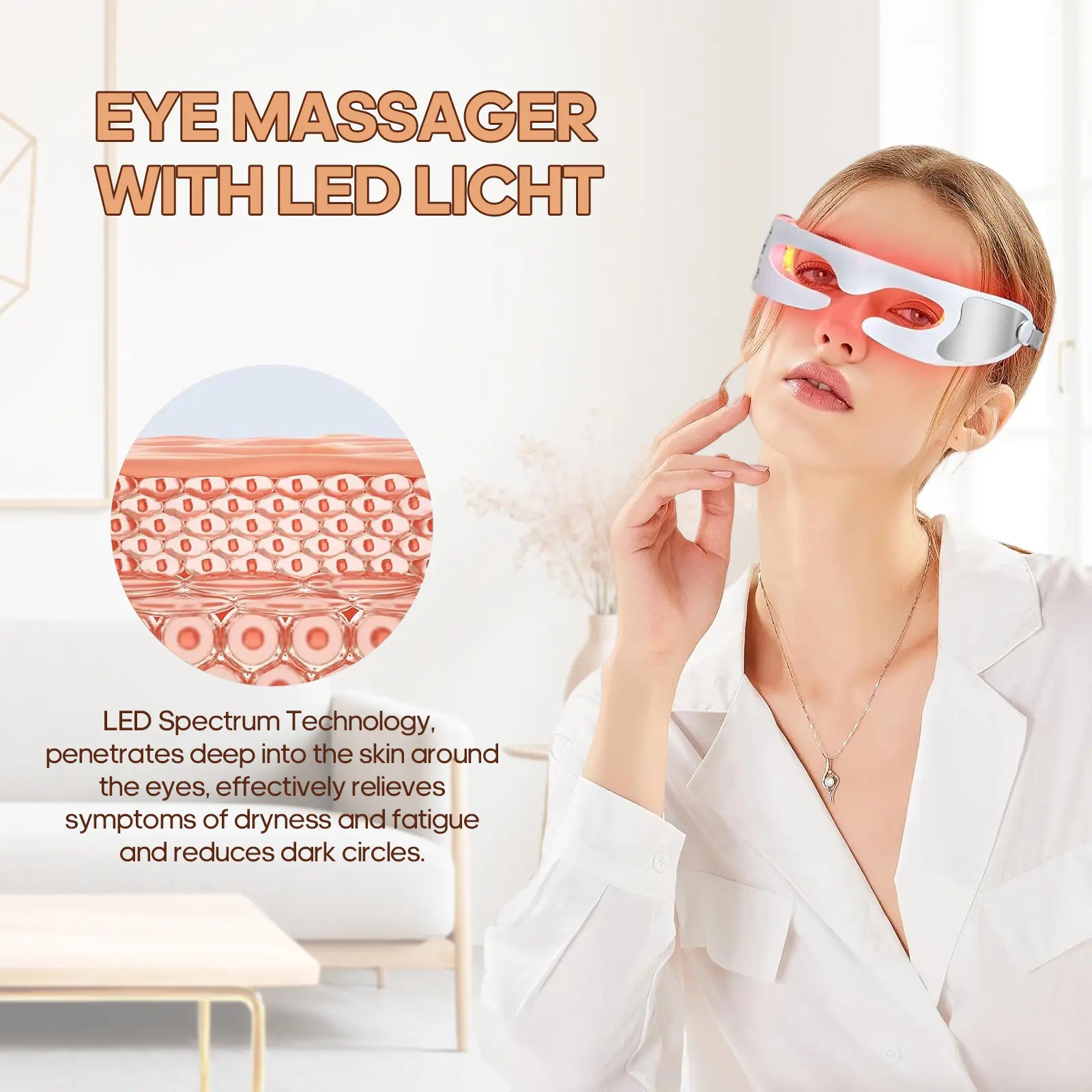 ·Natural Approach: Utilizes the power of red light therapy, a non-invasive and natural solution for rejuvenating the skin around the eyes.