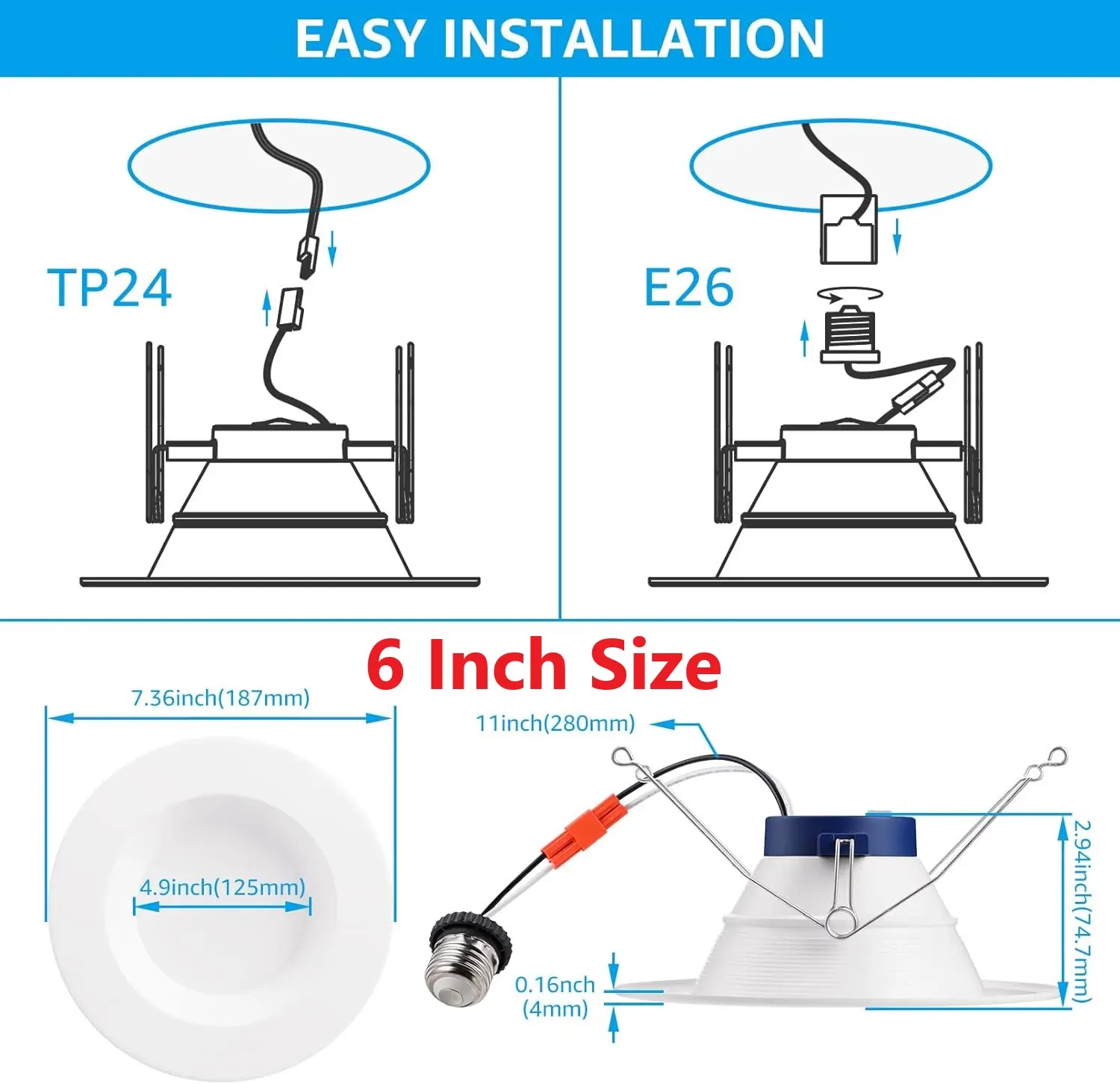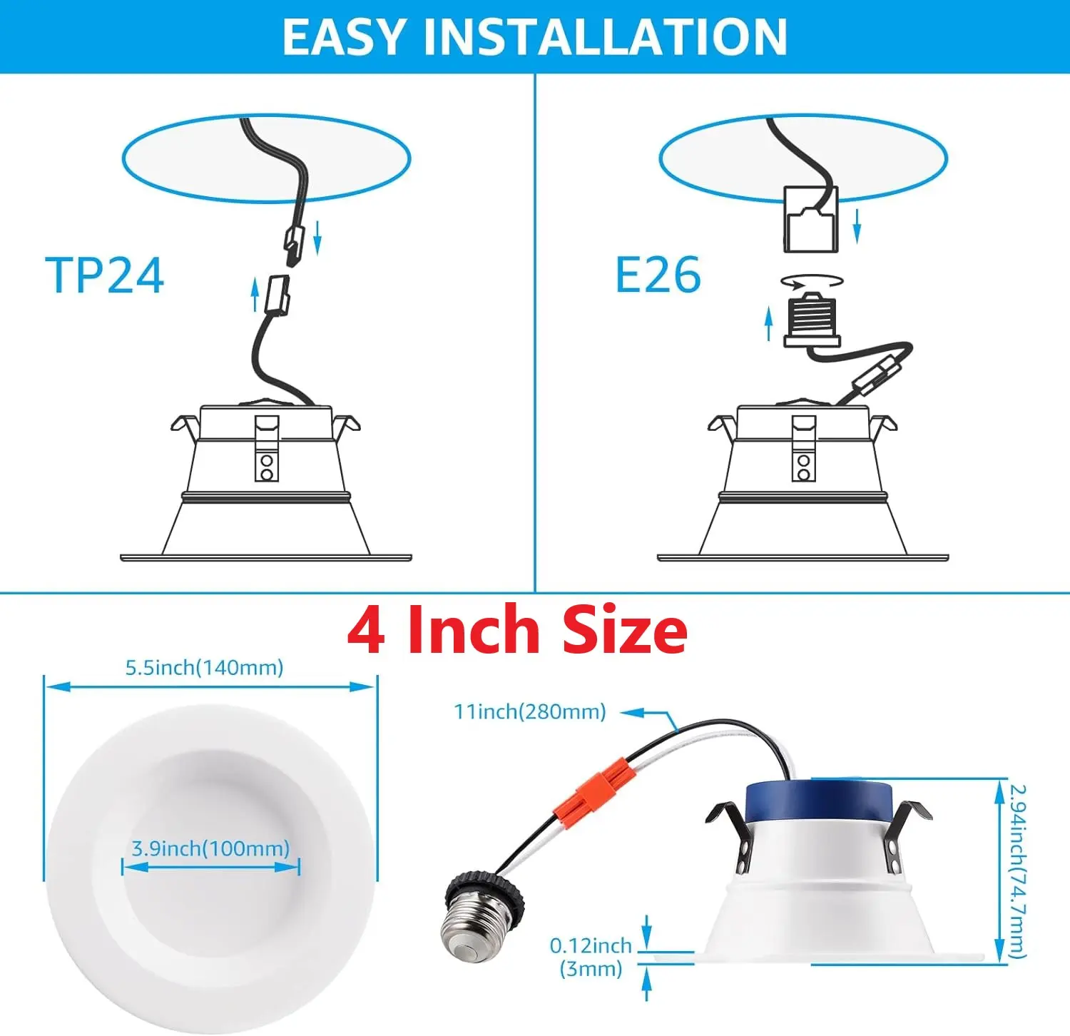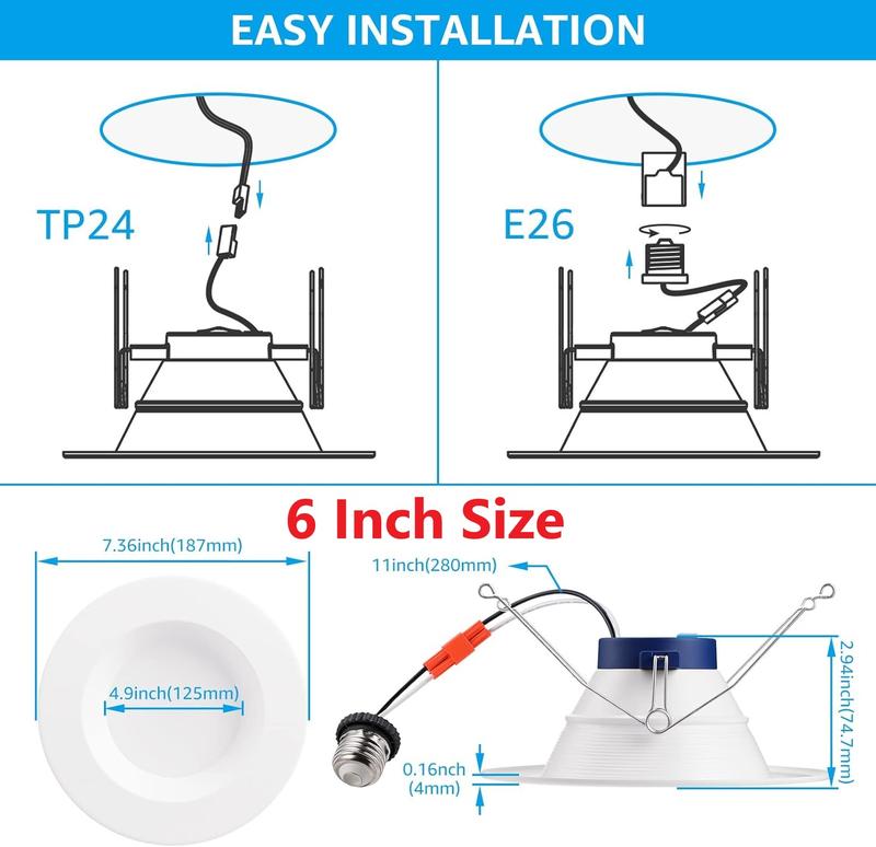 ·Authoritative Attestation: ETL, Energy Star, JA8, and T24 (only 4000K and below with JA8 & T24) listed this high-quality LED recessed light is safe to use and has outstanding performance. It also comes with a 3-year warranty