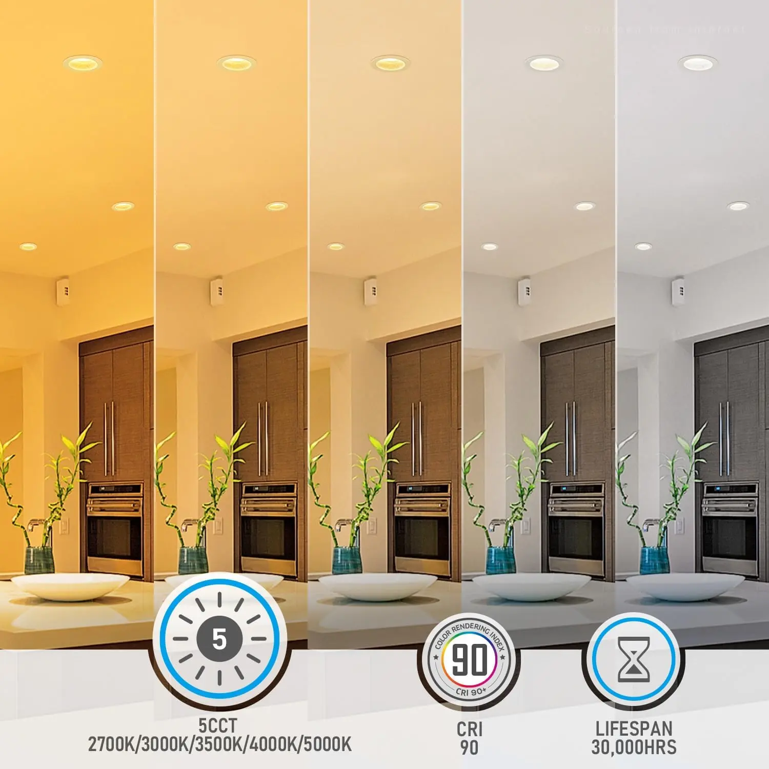 ·5CCT and 10%-100% Dimmable: Able to change the color temperature from warm lighting all the way to cool lighting, this light is compatible with most dimmers to achieve smooth 100%-10% dimming