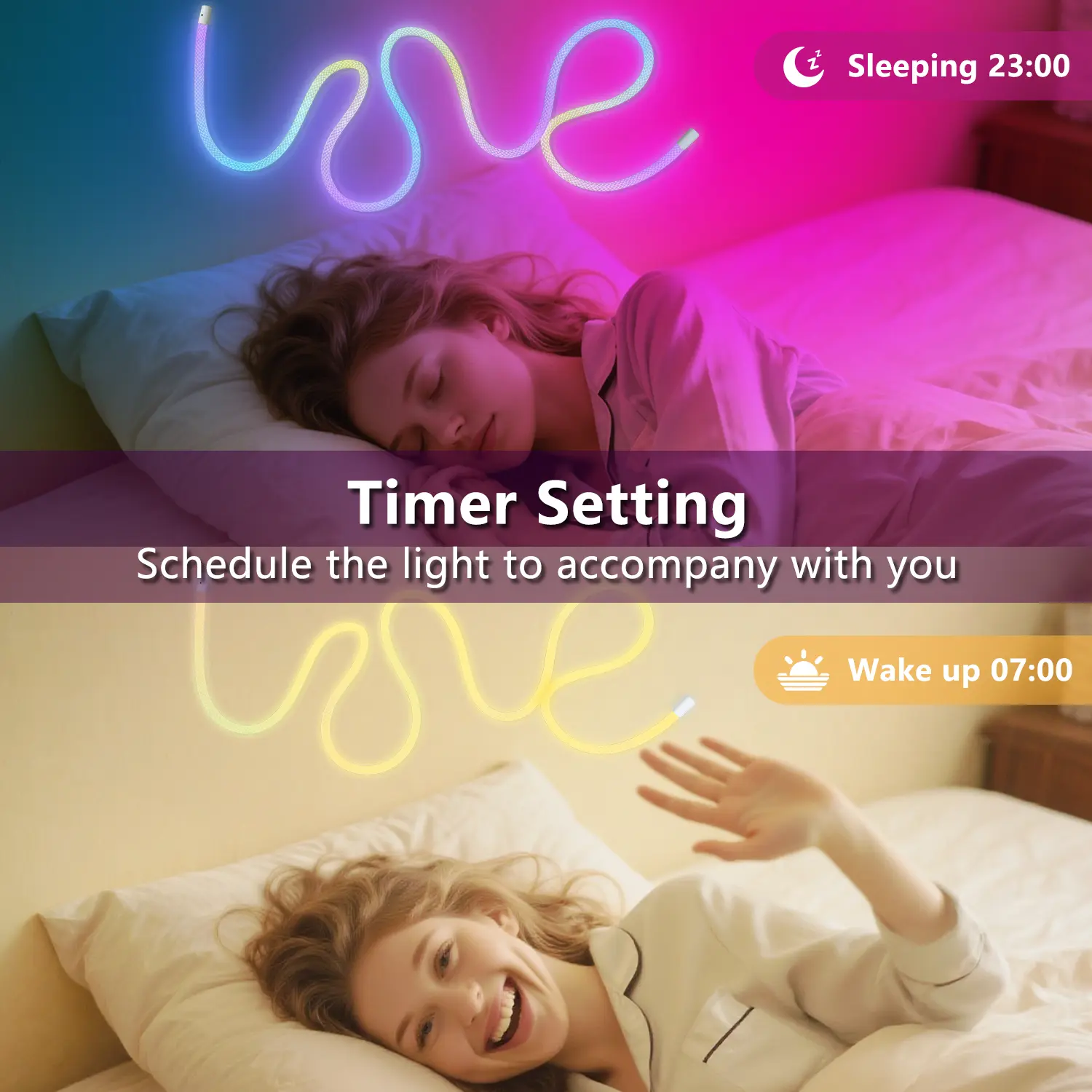 --360-Degree Illumination:This neon lights strip offers 360-degree illumination, providing full even light distribution from all angles. It ensures that your space is beautifully lit from every direction, enhancing your room decor with a captivating glow.