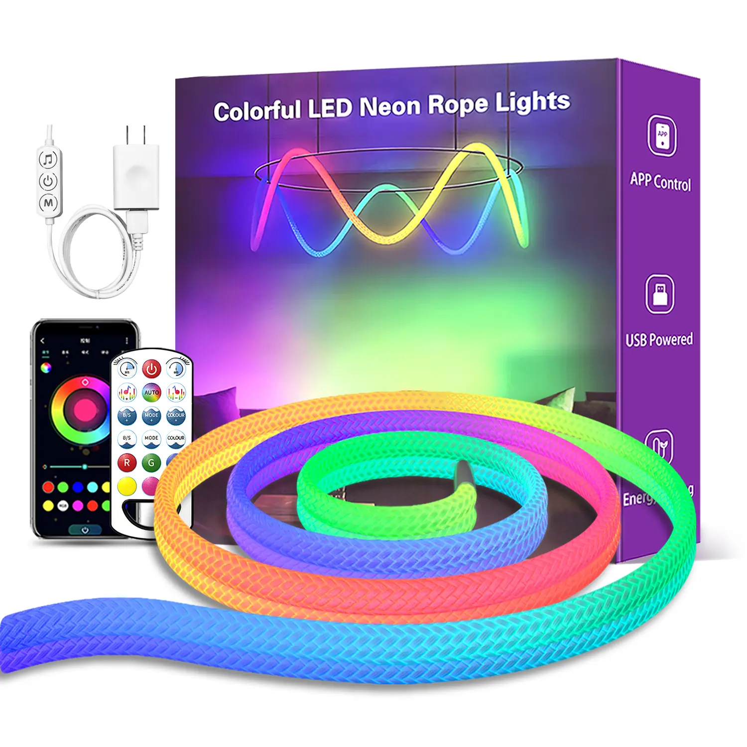 --Flexible and Easy to Install: Round reticulate pattern neon led strip,soft silicone tube is easy to bend and DIY various shapes. The LED strip featuring a 3PIN interface, controller is 5V USB interface offering flexibility and portability.Please do not use higher than 5V power supply.Power supply is included in the package.