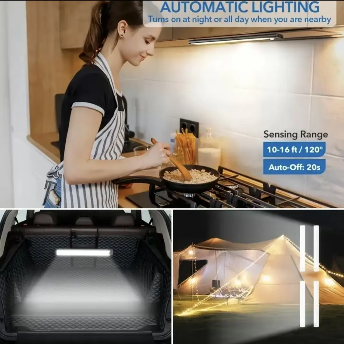 USB Rechargeable & Energy-Saving: Equipped with a rechargeable battery, this indoor motion-sensing light enhances versatility.Auto-turns on and shuts off after 20 seconds of inactivity.The motion sensor light uses an A+ grade lithium polymer battery featuring high energy density and extended cycle life.(Charging: Red light, Charged: Green light) (Charge before first use)