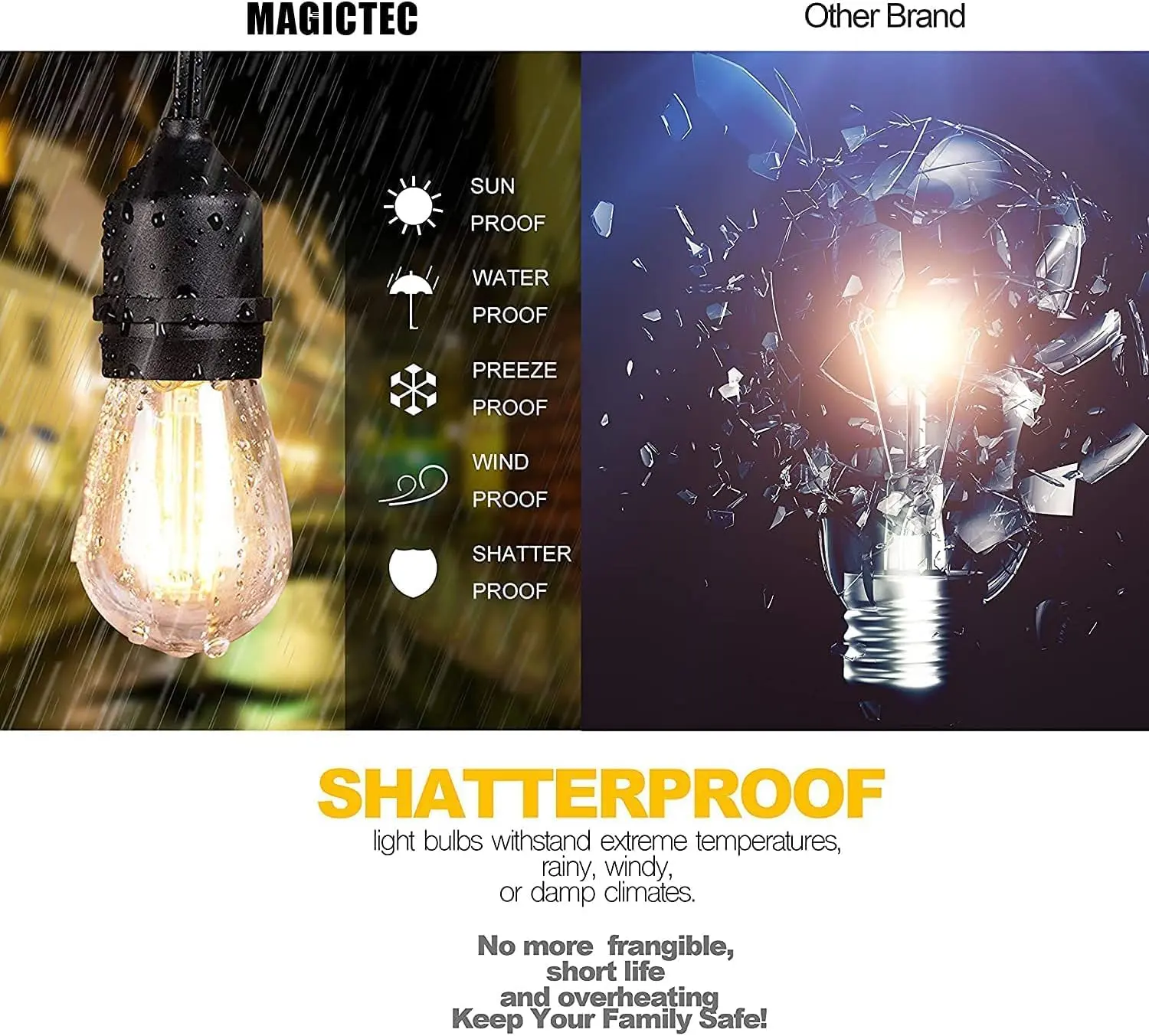 ·Commercial Grade Design: These LED Shatterproof String Lights are built for commercial use, ensuring durability and reliability. Perfect for large-scale applications.