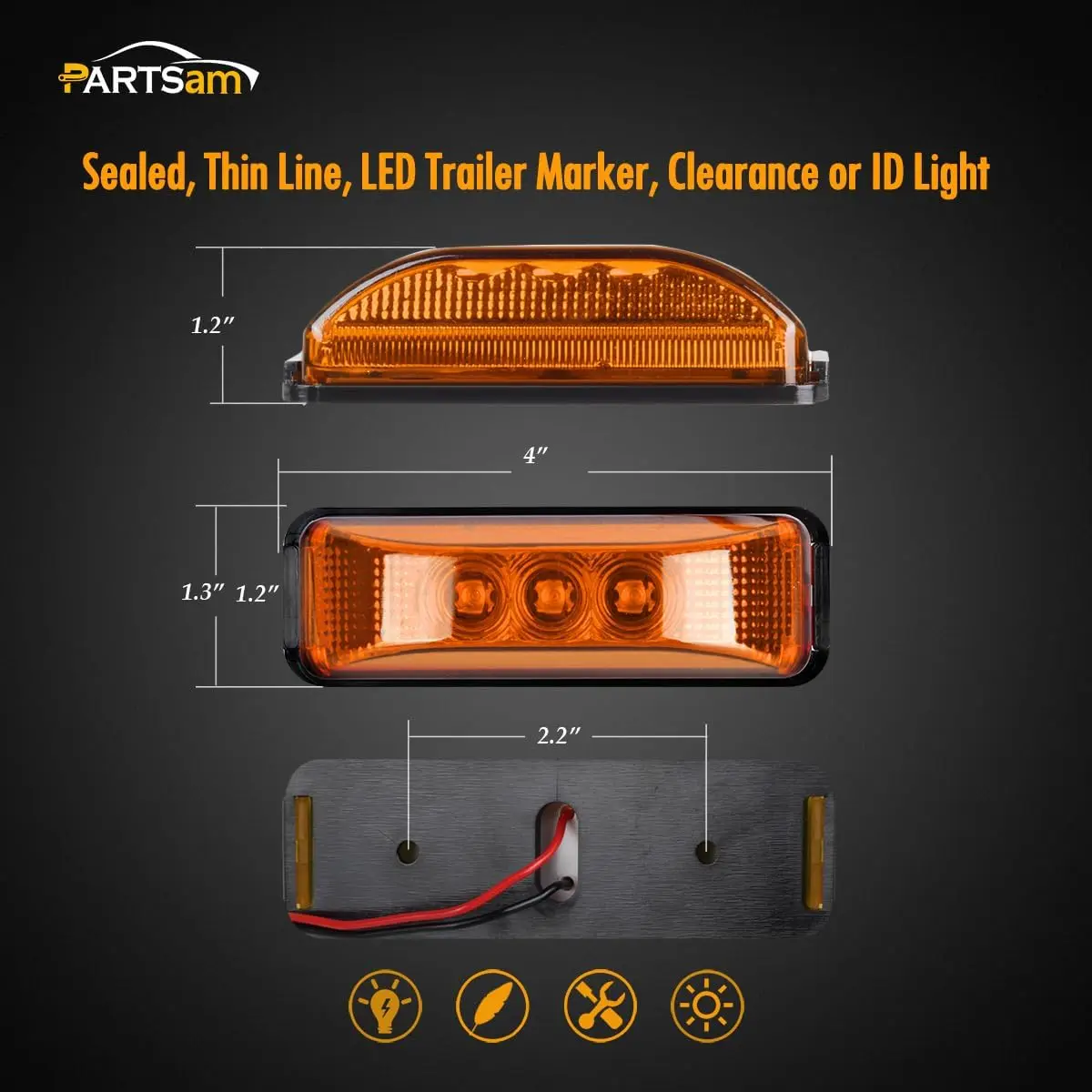 ·Partsam (2xAmber) 12V 3.9 inch LED Front Rear Marker Lights, stainless screws for installation are included.
