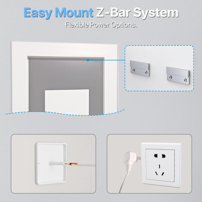 The back of the mirror features a U.S. standard three-prong plug with a 1.5-meter black power cord. You can either plug it directly into an outlet or cut off the plug for hardwiring, allowing you to control it with a wall switch.