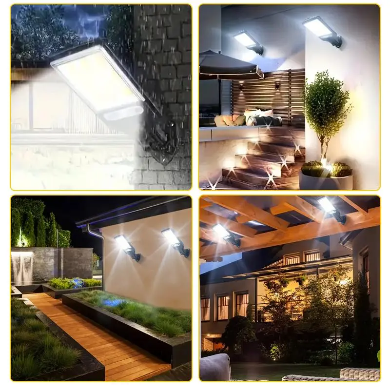 【Efficient Solar-Powered Lighting】4-pack solar sensor lights provide bright, energy-efficient illumination. They charge during the day and auto-activate at night, perfect for gardens, garages, yards, and outdoor walls.