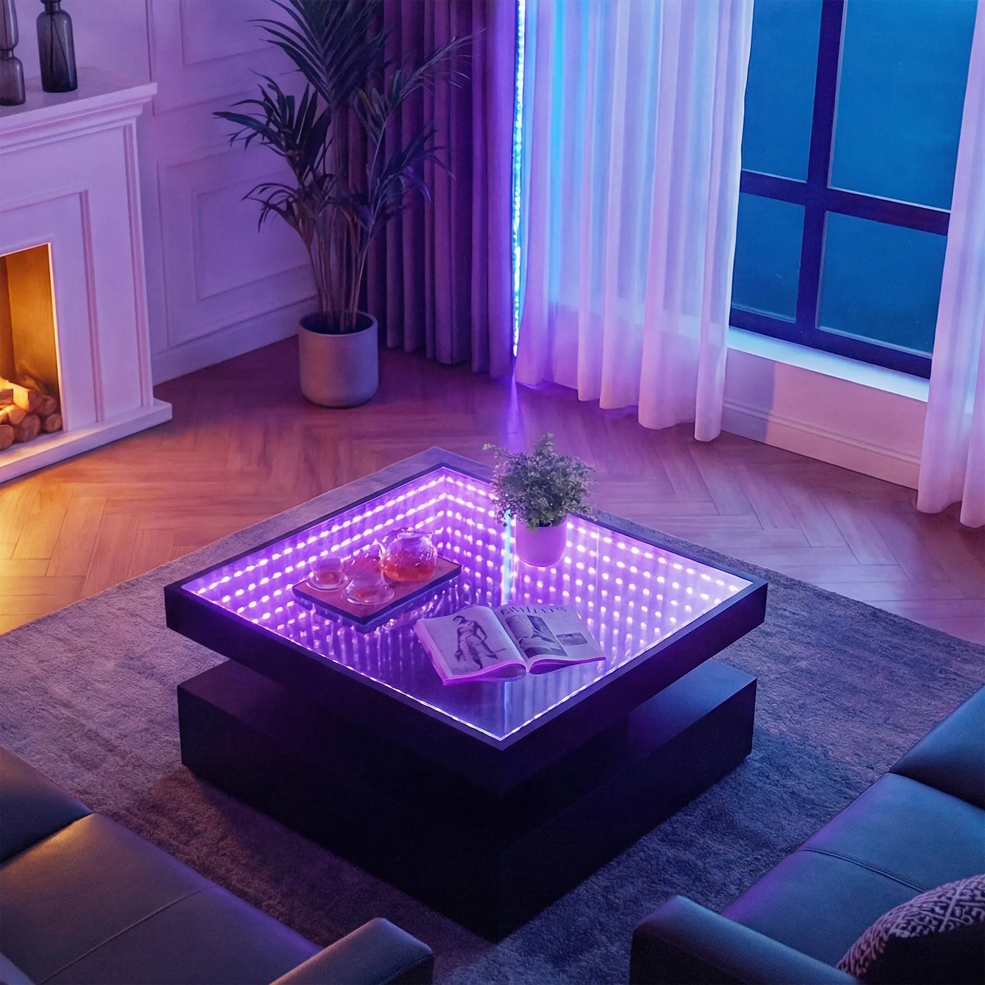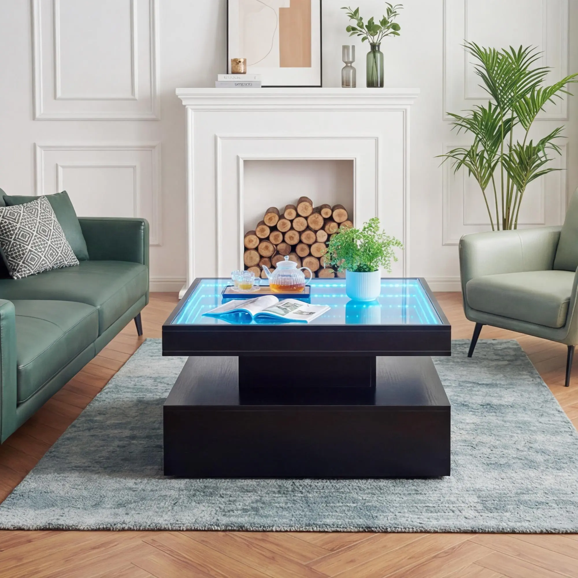 ·Modern LED Coffee Table:This square coffee table features a frosted tempered glass top and sturdy engineered wood base. Clean lines with a modern black finish make it a perfect fit for living rooms, apartments, offices, or reception areas.