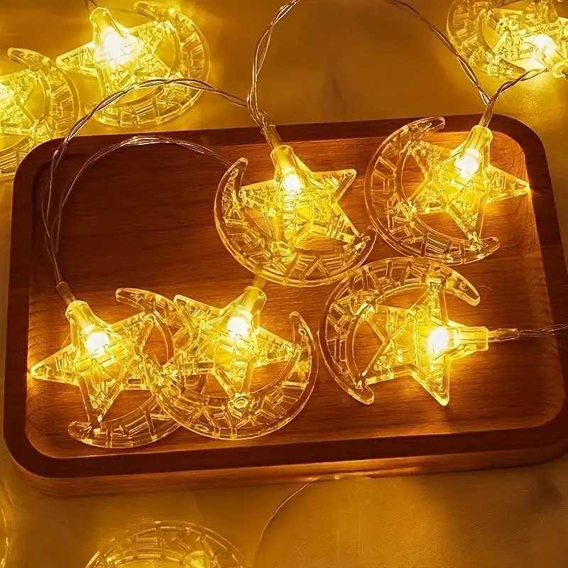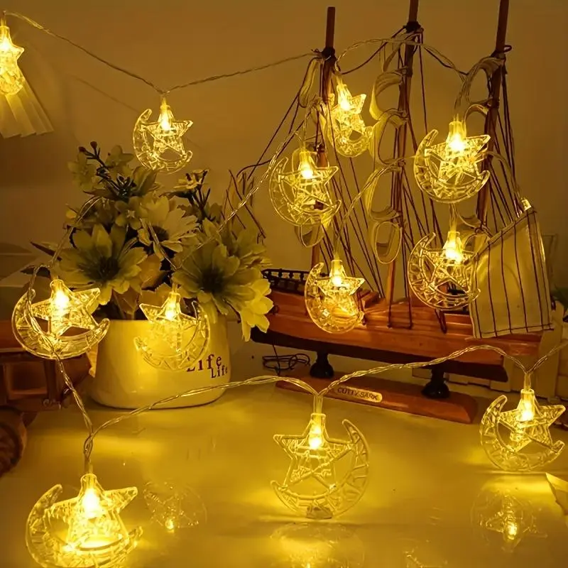 LED Star Moon Decorative Light String, Dynamic LED Lights, Ramadan Indoor Room or Bedroom Wall Decoration, Party Holiday Festival Ornament