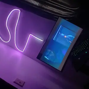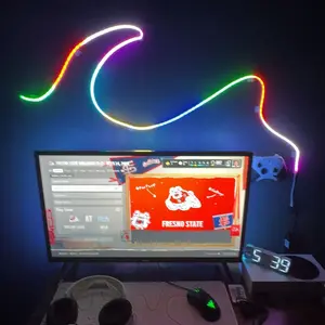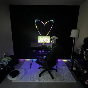 Great LED lights! Love for my gaming/office area. Not fully done but this is the start ☺️ Only 4 stars because the adhesive that comes with the lights are too sticky and will take the paint off of the wall. I had to get black wall paper to hide the marks. Please use command strips!!!