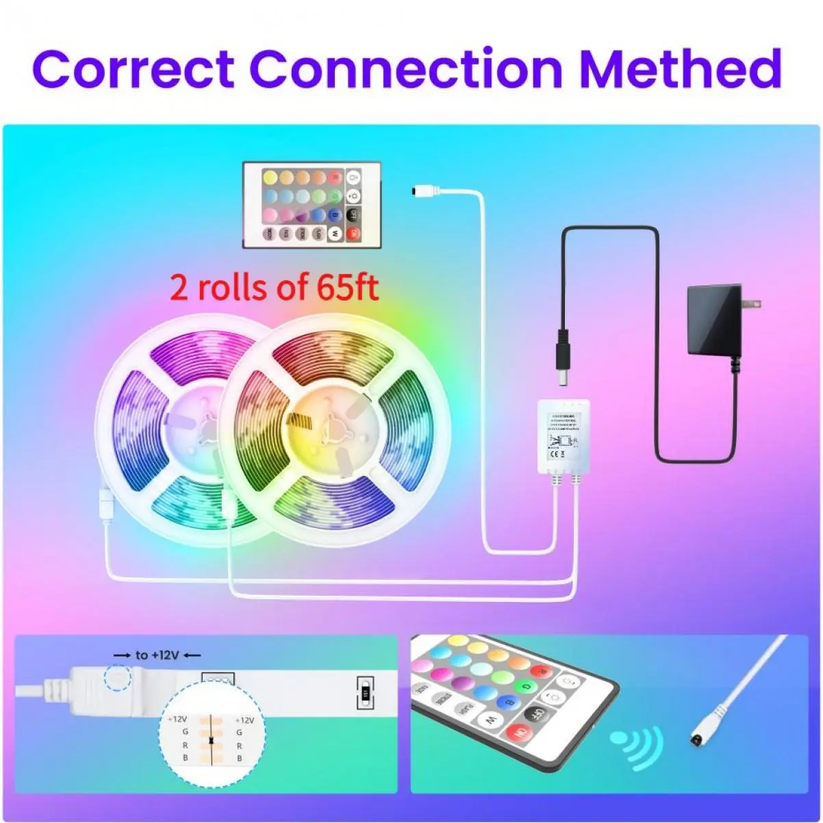 It supports both APP Apollo Lighting and 24 keys IR remote for control. Connect the light to the phone APP Apollo Lighting via Bluetooth, then you can control over 16 million colors, turn the lights on/off, use the dimming function to set the mood, or choose your favorite color effects. You can also use the remote to adjust your light strip.