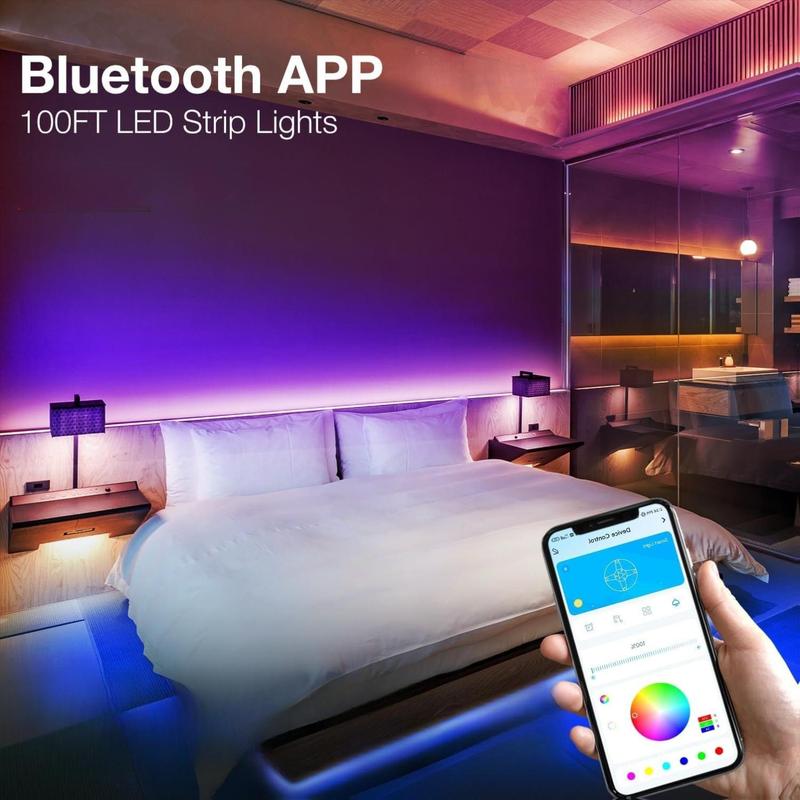 100 feet LED strip lights support both app and 44-key IR remote control. Change LED lights' color and modes conveniently for bedroom, ceiling, kitchen, living room, bar, and party decoration. This versatile control ensures easy setup and adjustment.