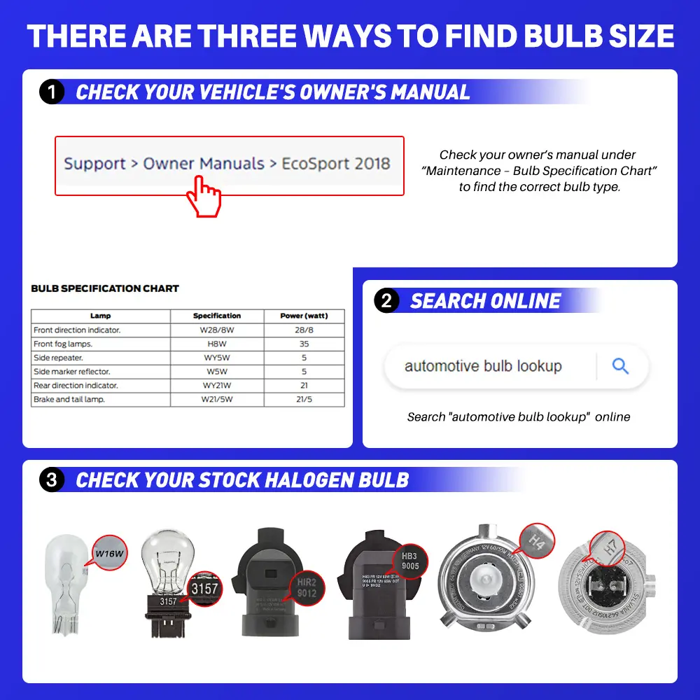 Β·Please double check [bulb size] for your vehicle's owner's manual or stock lamp before placing an order.