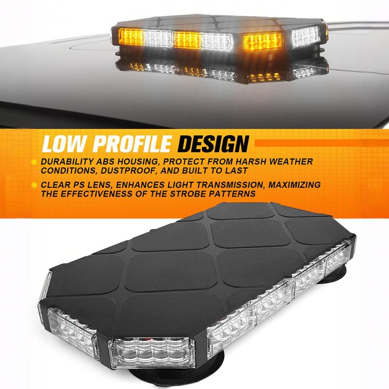 Elevate your safety with this 56 LED Roof Strobe Beacon Lights Strip. Perfect for emergency situations, it features amber and white flashing lights. Ideal for men's car accessories, it's a thoughtful Father's Day gift. This strobe light bar ensures visibility and alertness on rooftops. Stay safe and visible with this reliable emergency lighting solution.